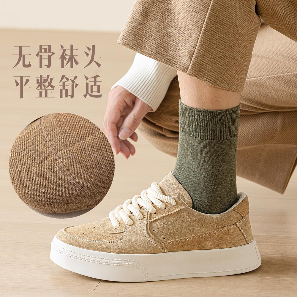 棉伙棉伴海藻袜舒适抗菌防臭男女商务运动纯色裸感中筒袜
