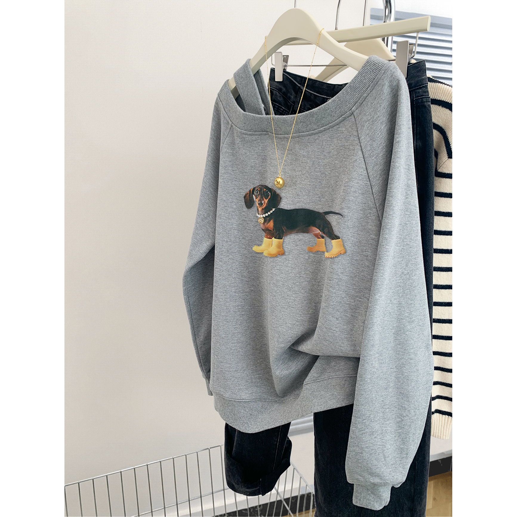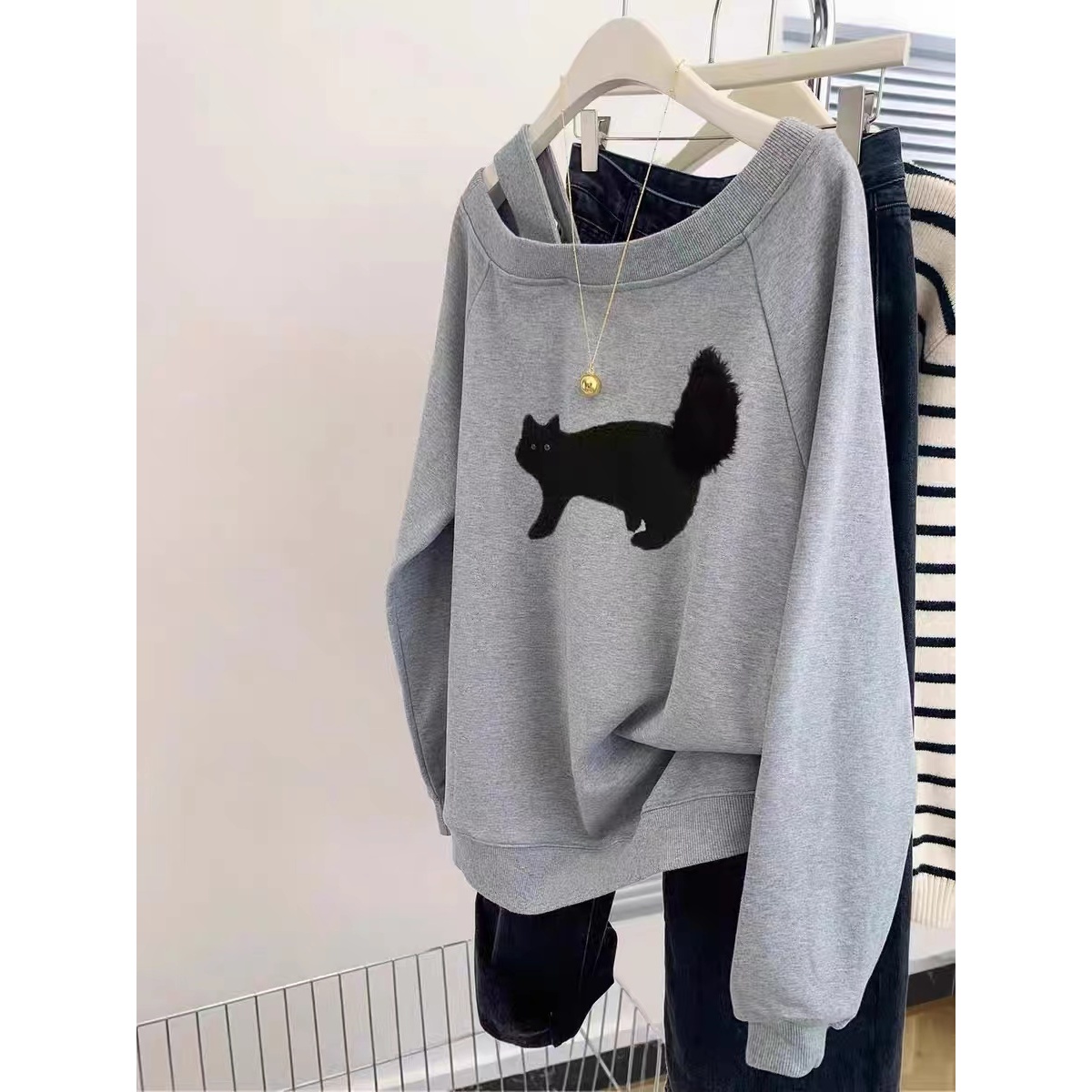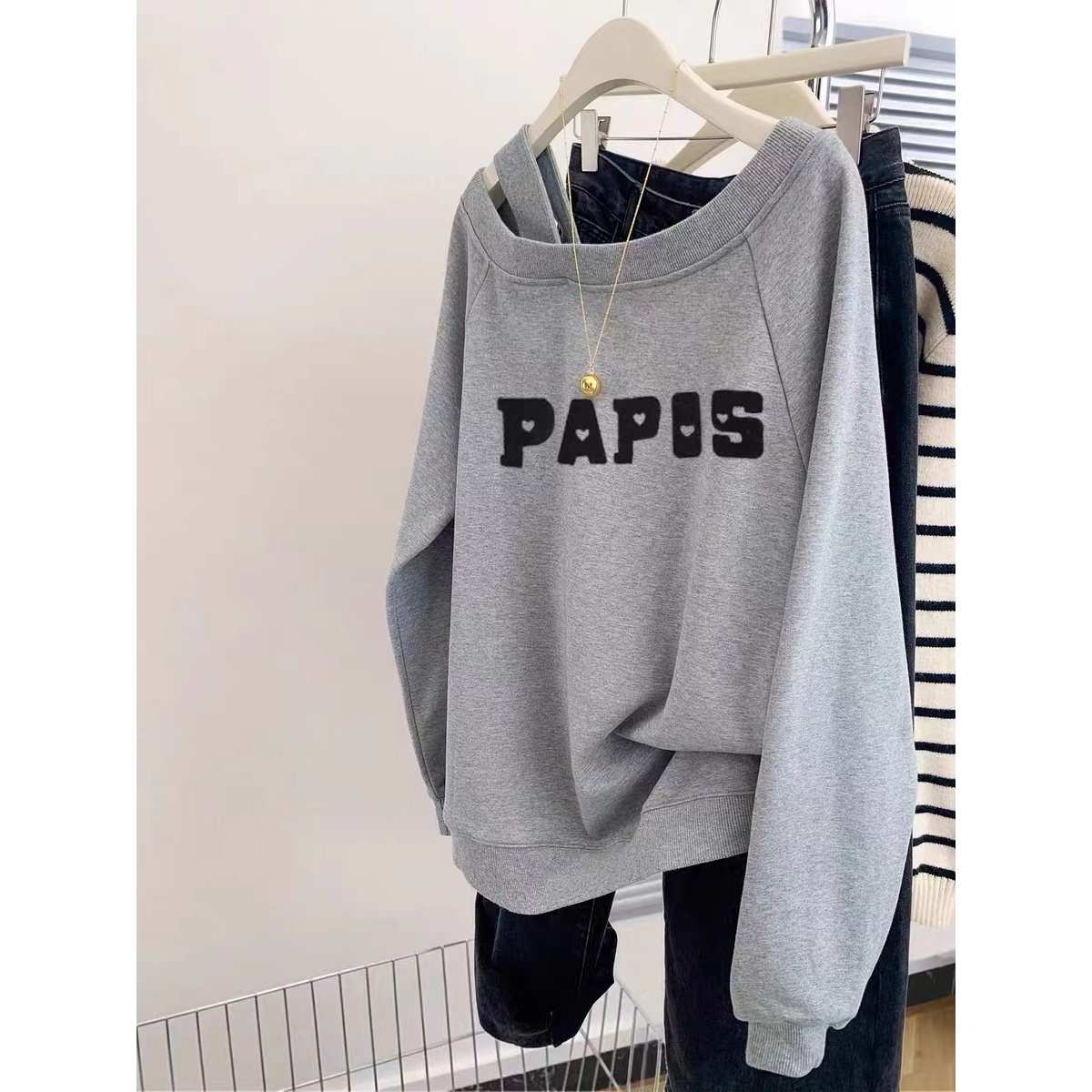 洋气外套上衣春秋薄款 200斤胖mm大码 时尚 2025爆款 斜肩卫衣女新款