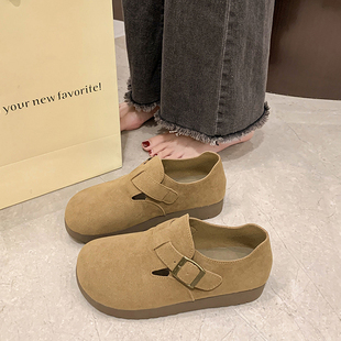 春秋款 子2025新款 一脚蹬单鞋 全包丑萌博肯鞋 厚底勃肯鞋 豆豆鞋 女鞋