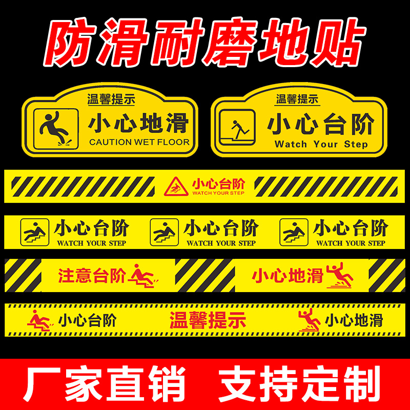 夜光小心台阶地贴地滑小心玻璃提示贴当心碰头提示牌温馨提示洗手间卫生间注意脚下安全标识警示标语指示牌子