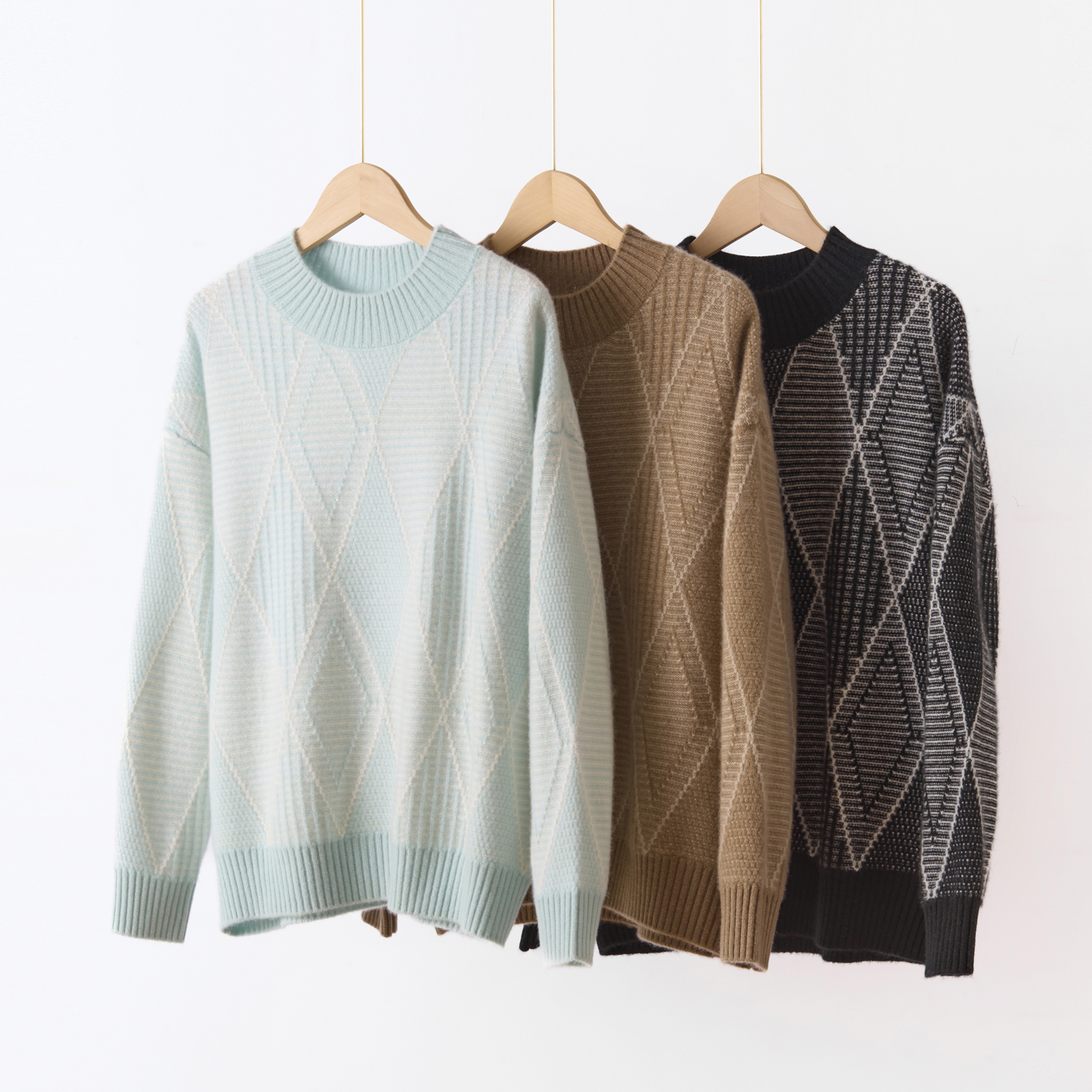 女士羊绒衫 春竹100%山羊绒季 针织衫 宽松气质无缝圆领套衫 新款