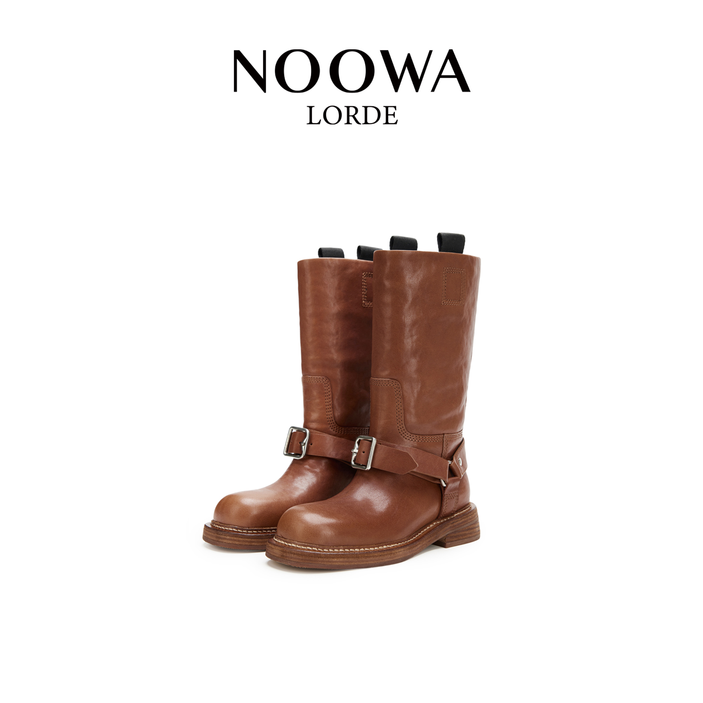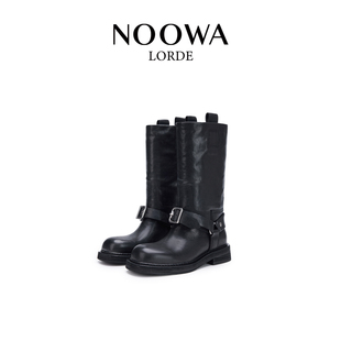 靴 百搭增高舒适皮带扣时装 NOOWA英伦粗跟马丁靴女2025秋新款 时尚