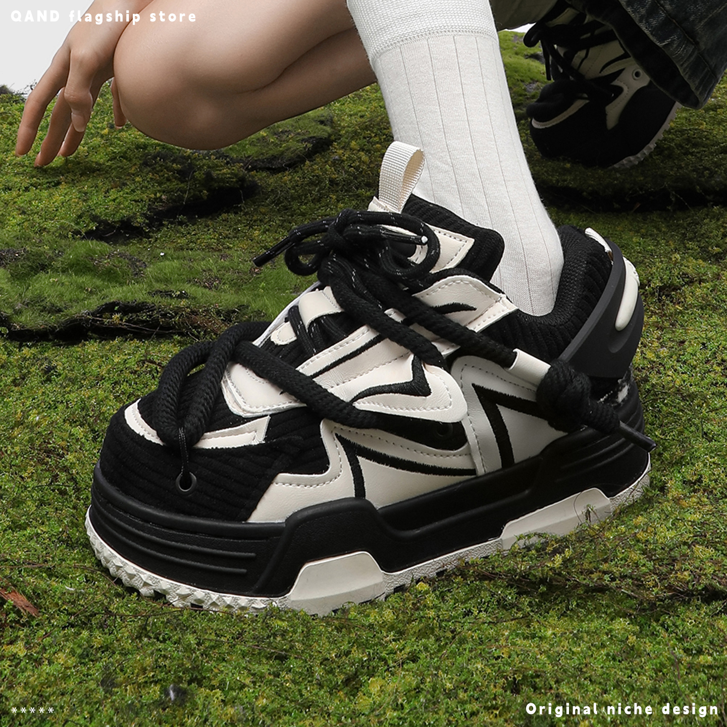 百搭潮鞋 MRA熊猫德训鞋 情侣厚底增高运动休闲板鞋 阿甘鞋 子 男秋季