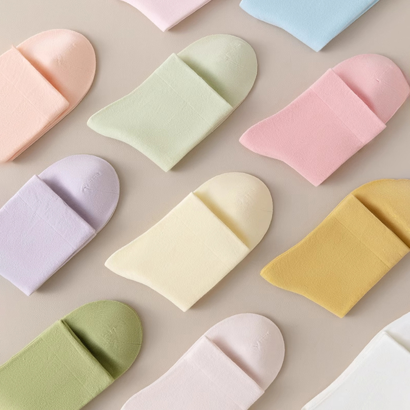 白色堆堆袜子女士春秋新款 百搭 无骨中筒袜不起球月子袜黑色薄款