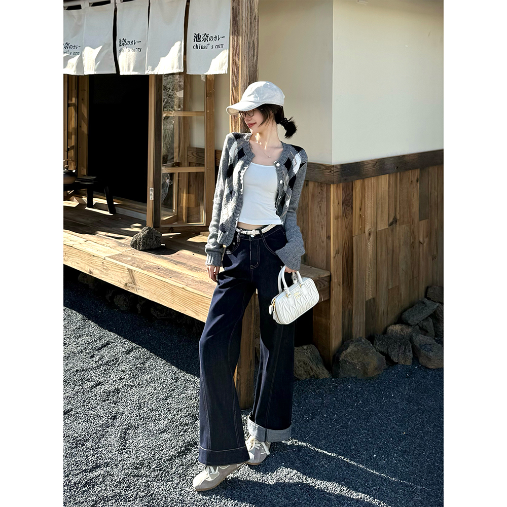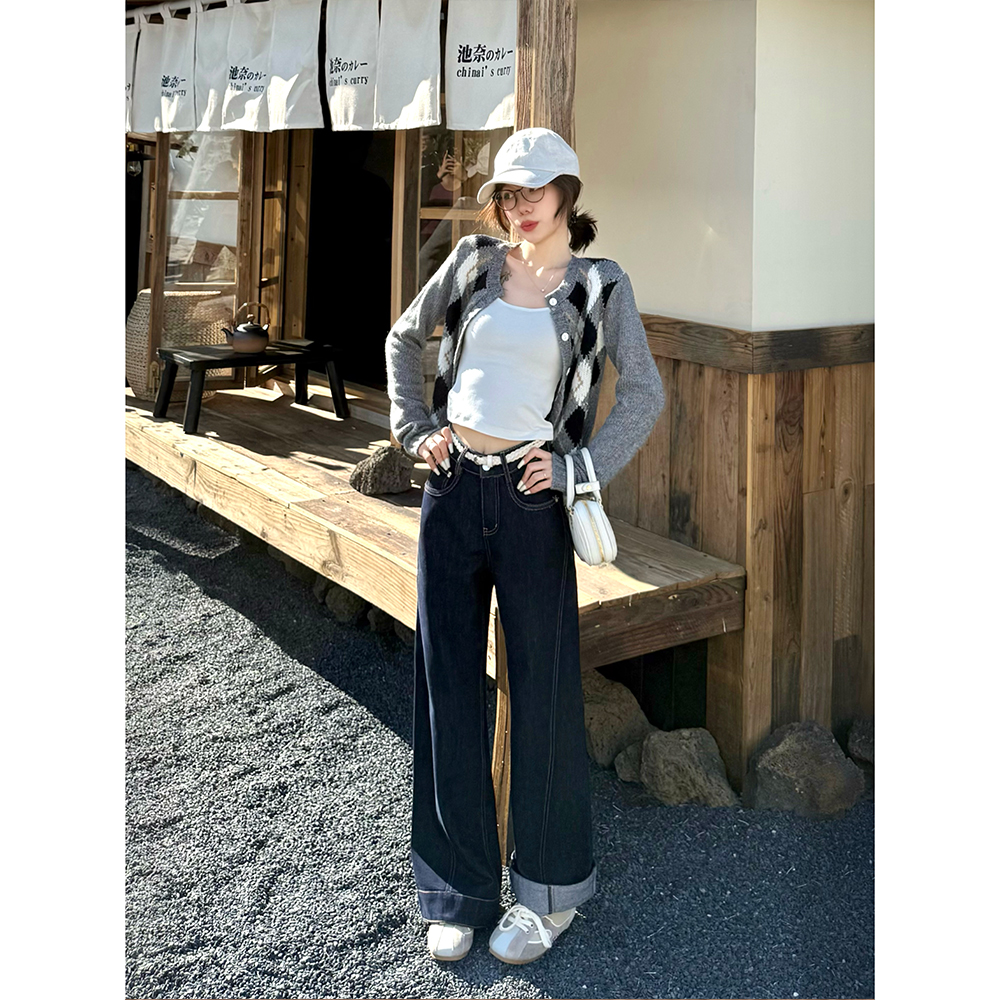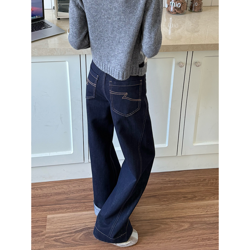 新款 直筒牛仔裤 丹宁色阔腿裤 显瘦时尚 女 2025百搭修身 王家有鱼秋季