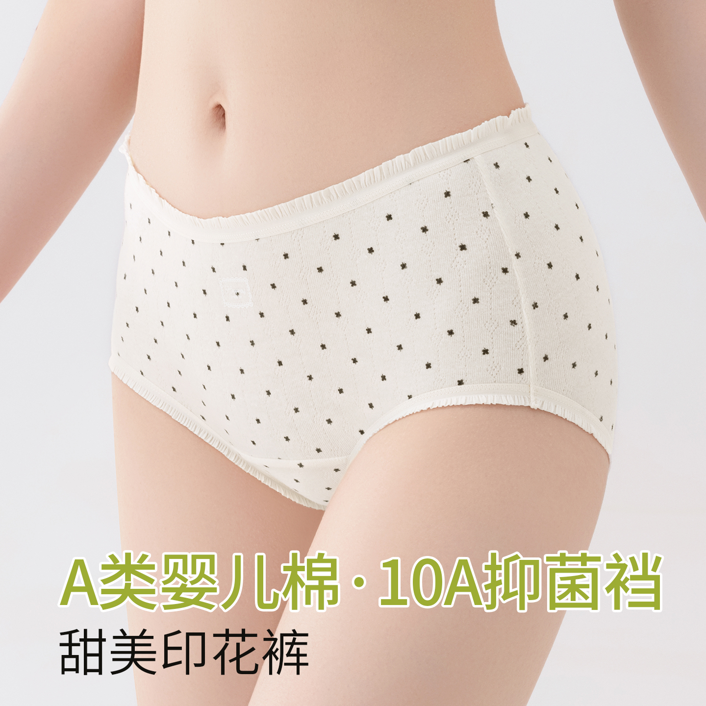 草本初色纯棉无痕加长裆内裤 女士10A抑菌少女中腰A类婴儿棉三角裤