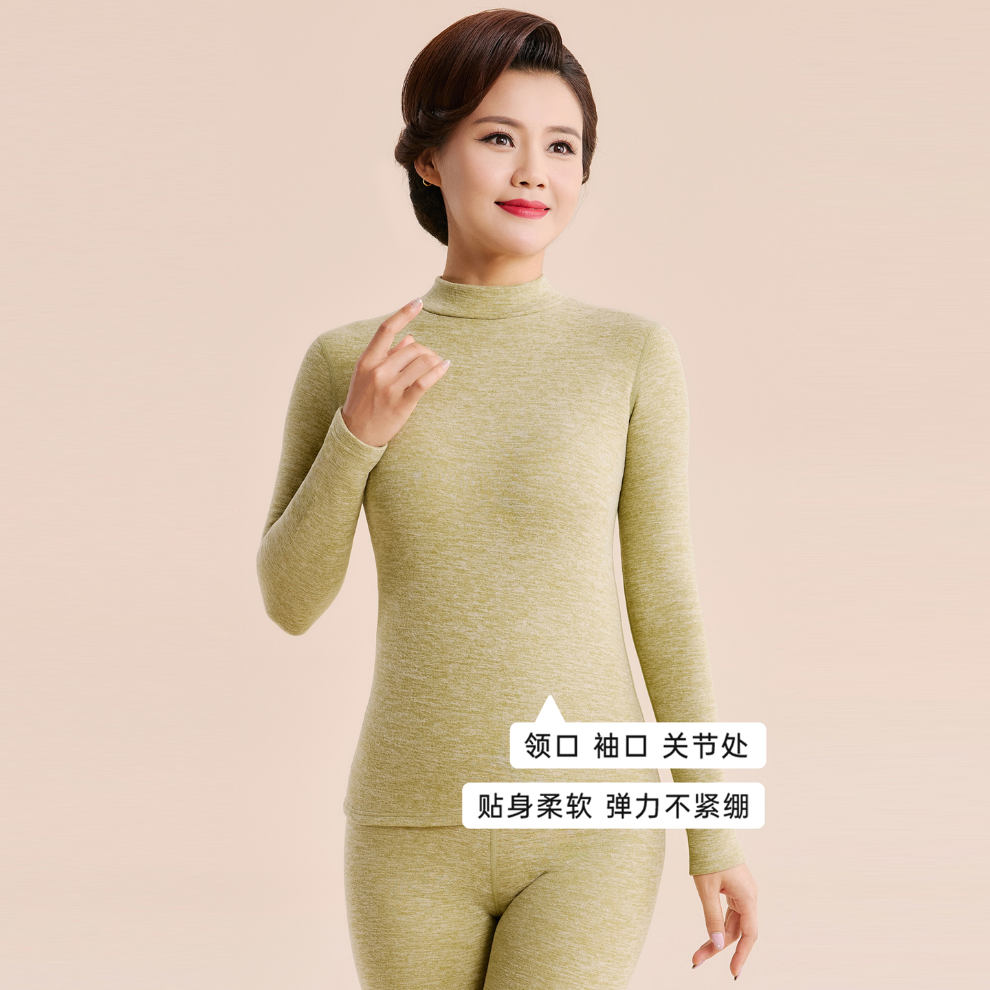 套装 含羊绒桑蚕丝中老年人秋衣秋裤 大码 保暖内衣女加绒加厚冬季