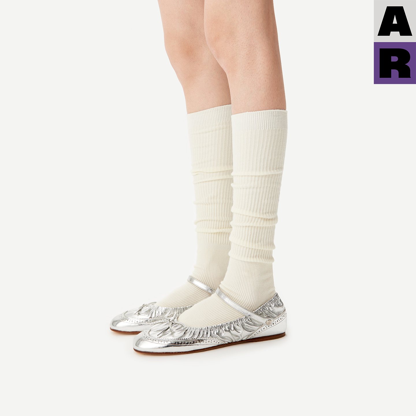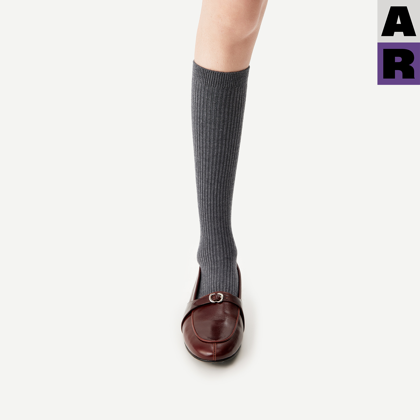 AR天丝羊毛桑蚕丝小腿袜纯色坑纹显瘦美腿长筒堆堆袜秋冬 紫标