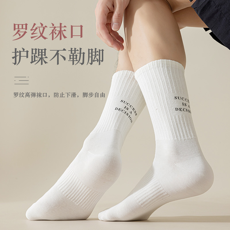 猫人长袜子男士 棉袜子中筒抑菌防臭吸汗青少年百搭字母潮袜子 秋季