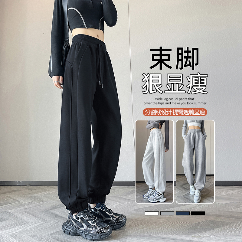 卫裤 运动裤 休闲美式 哈伦小个子宽松束脚纯棉灯笼裤 女春秋2025新款