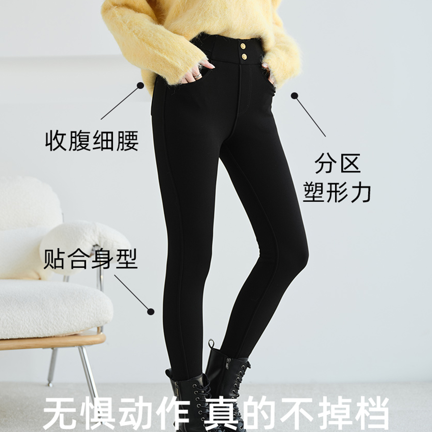 加绒2025新款 高弹力黑色小脚裤 秋冬 女秋外穿铅笔裤 羊绒蚕丝打底裤