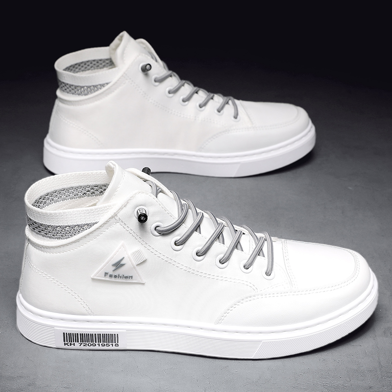 青少年一脚蹬轻便工作小白潮鞋 潮流百搭休闲运动高帮板鞋 秋季 男鞋