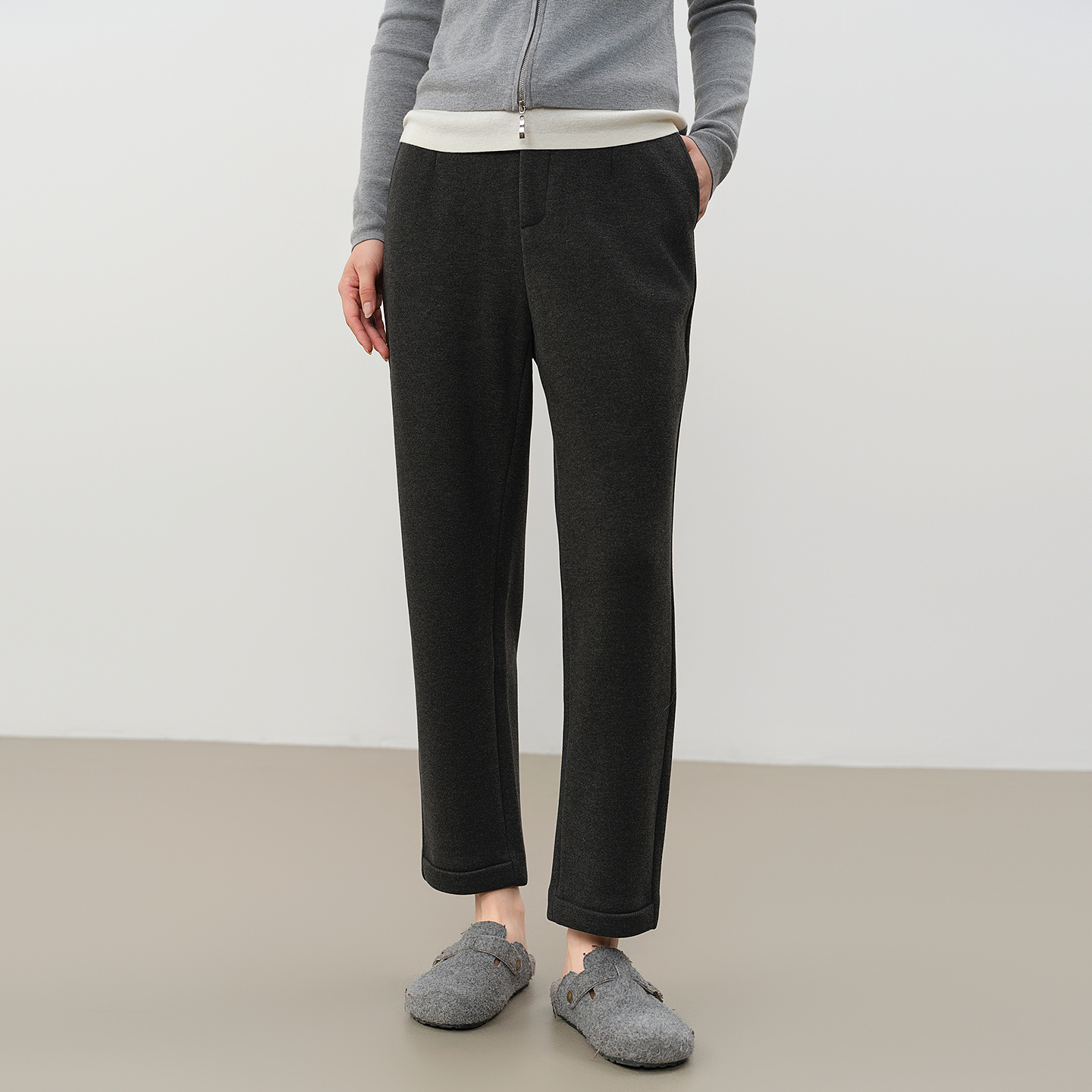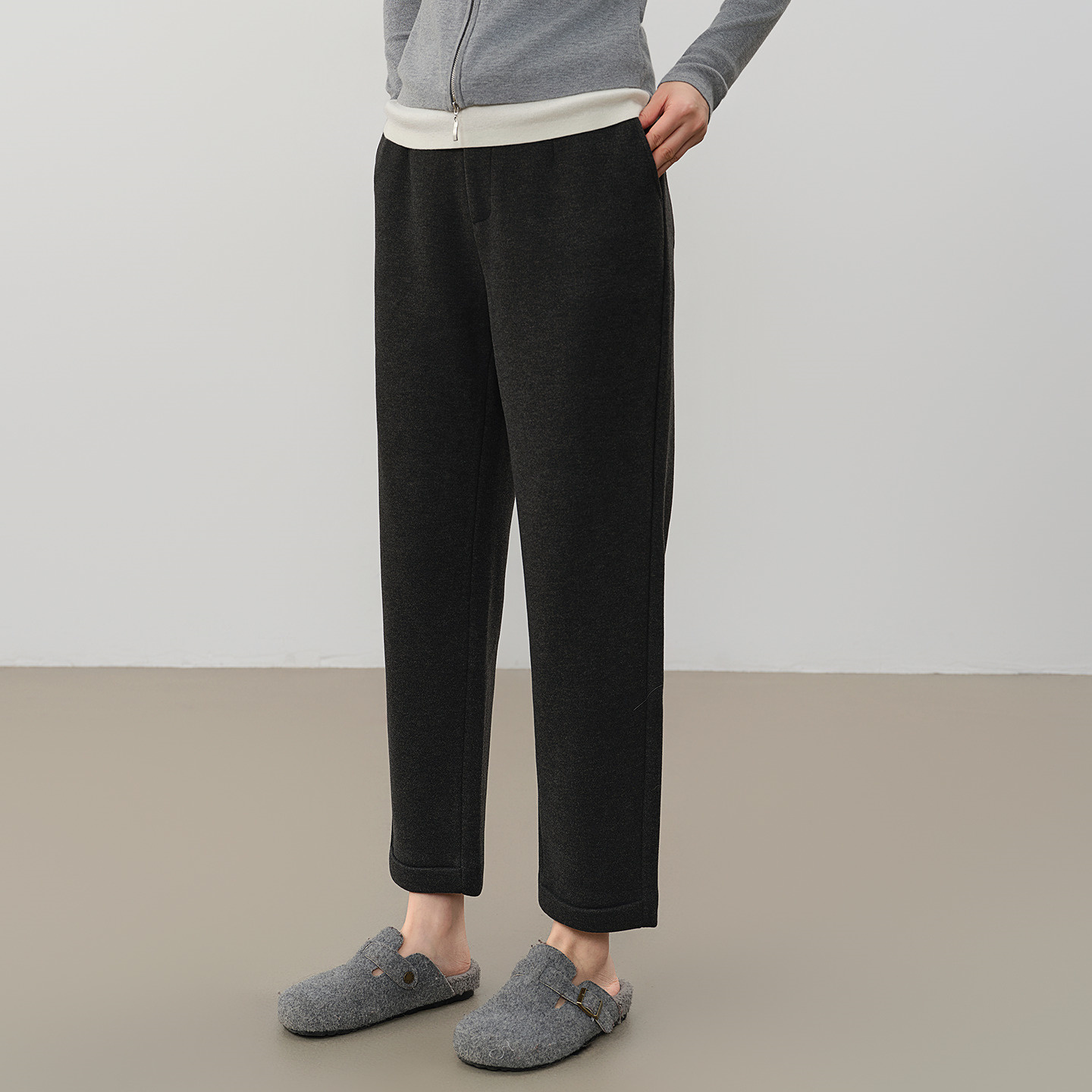 高级宽松bf慵懒垂感直筒加绒休闲阔腿裤 2025新款 子女春秋季 糯米裤