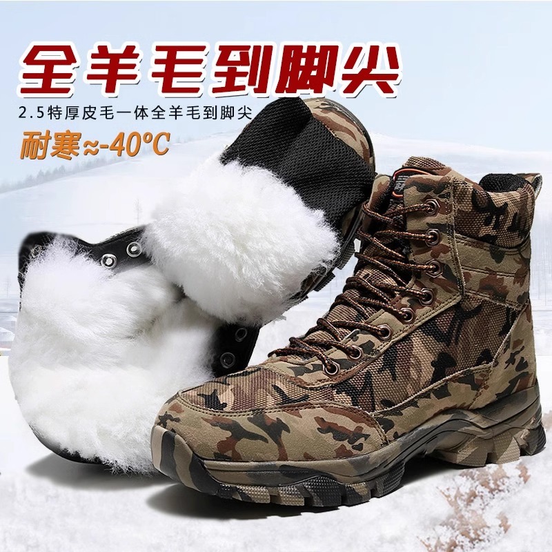 东北加厚雪地靴劳保大棉鞋 鞋 男 羊毛棉靴男防水加绒保暖工装 冬季