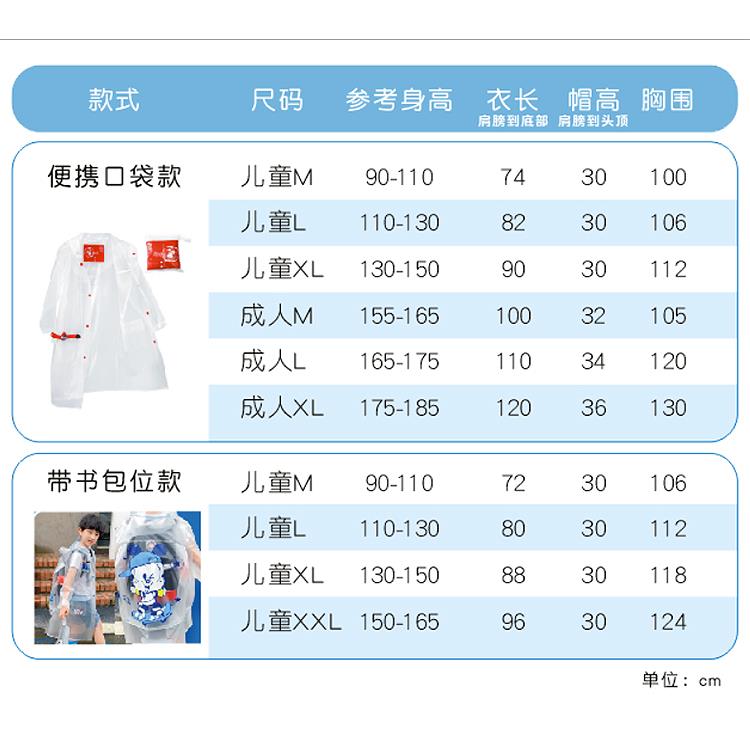备美儿童雨衣小学生上学专用男童女孩长款 全身防暴雨带书包位雨披