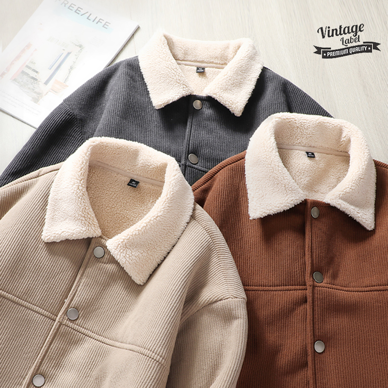 加绒夹克 上衣休闲纯棉工装 翻领外套秋冬美式 复古宽松外穿潮牌开衫
