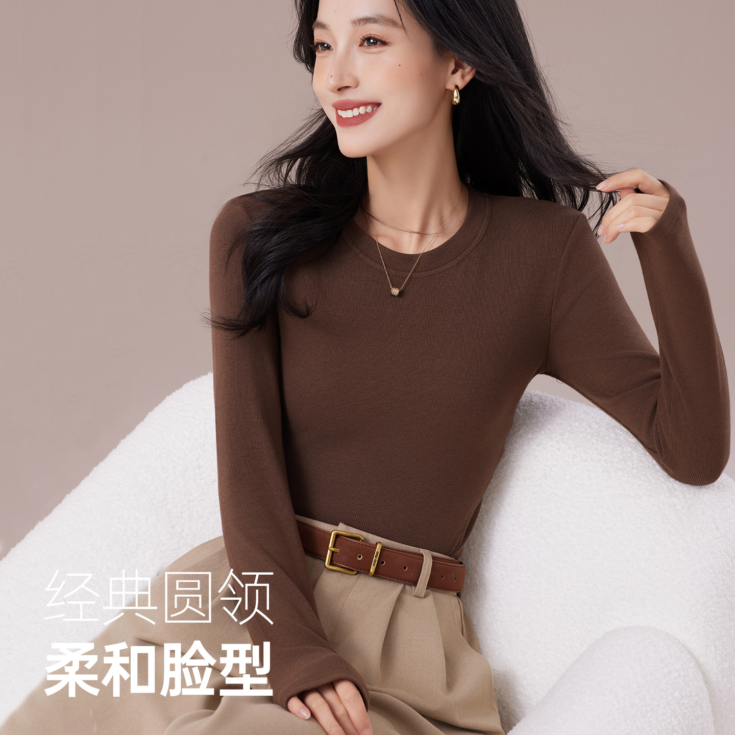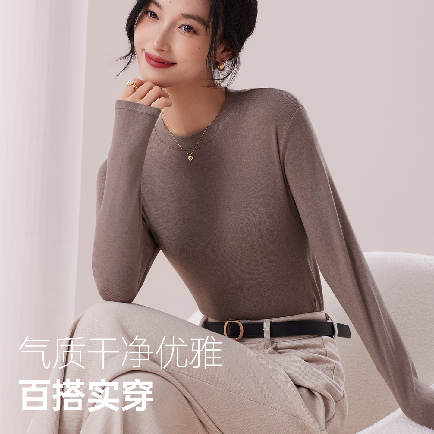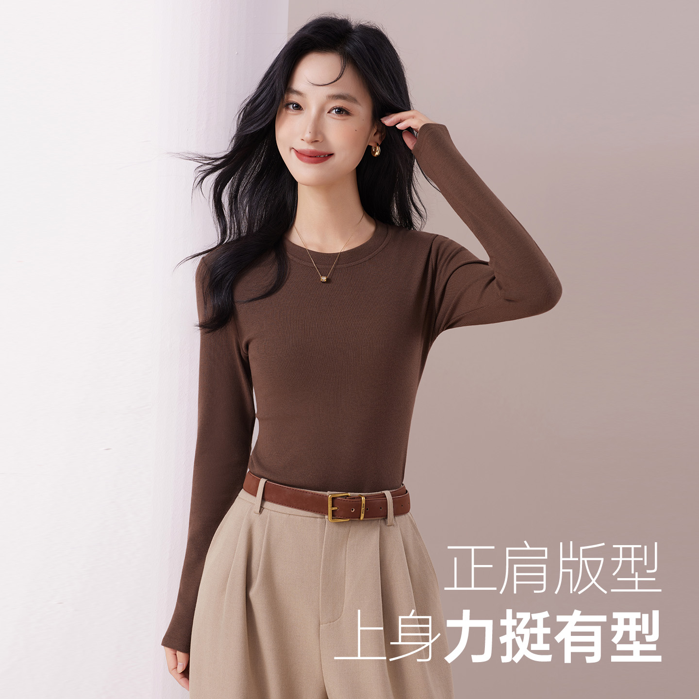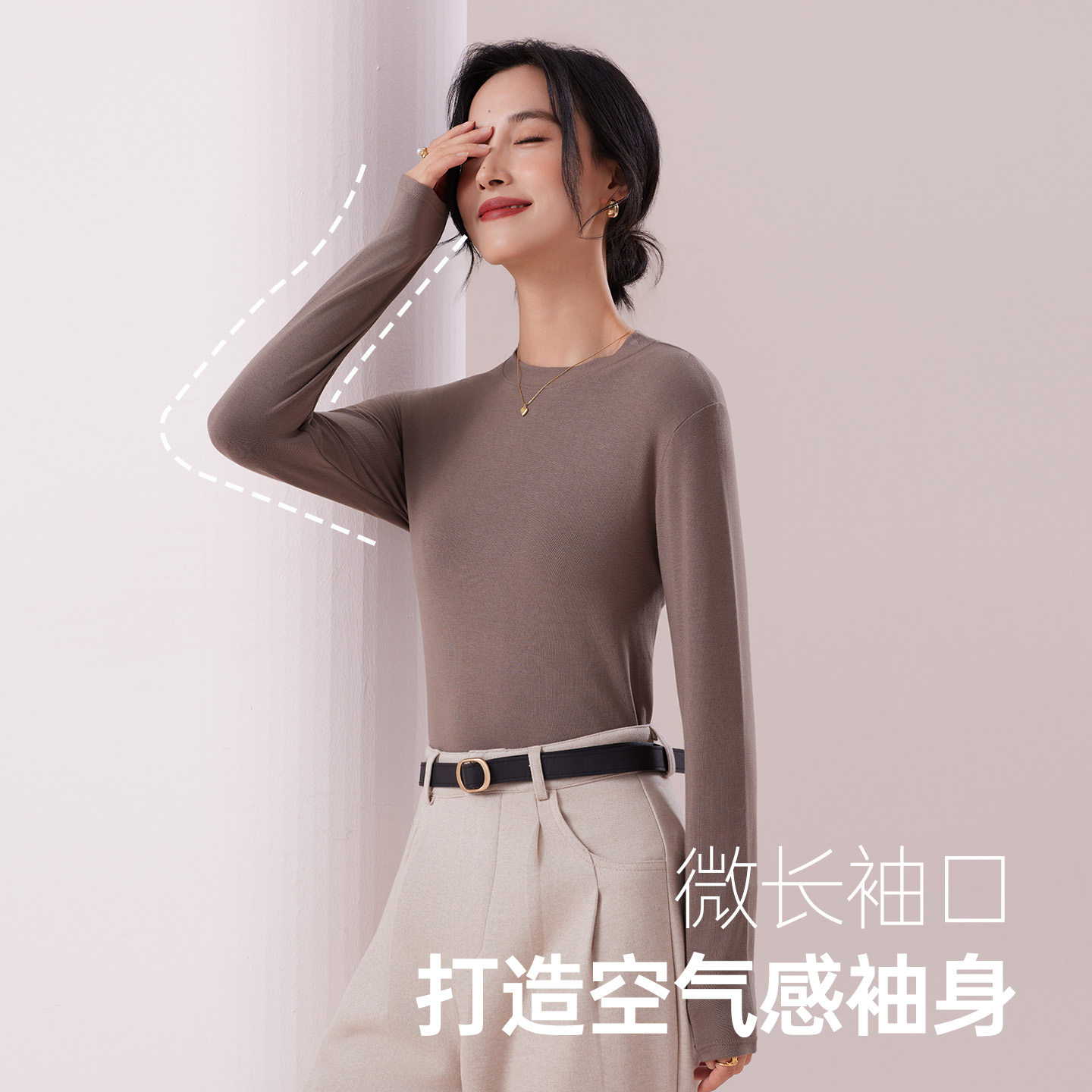 莫代尔小立领正肩打底衫 黑色上衣t恤 女士秋冬内搭可外穿圆领长袖