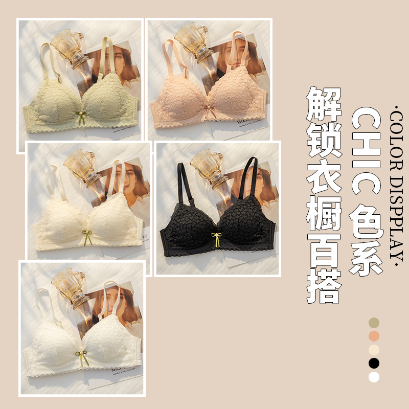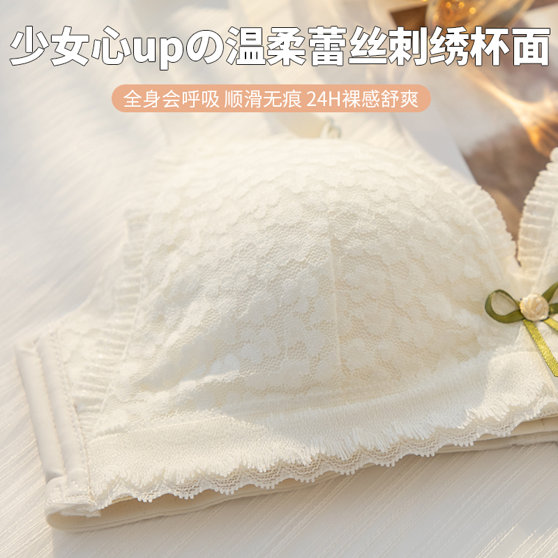 大胸显小不空杯少女风聚拢性感文胸罩 女无钢圈薄款 法式 甜美内衣裤