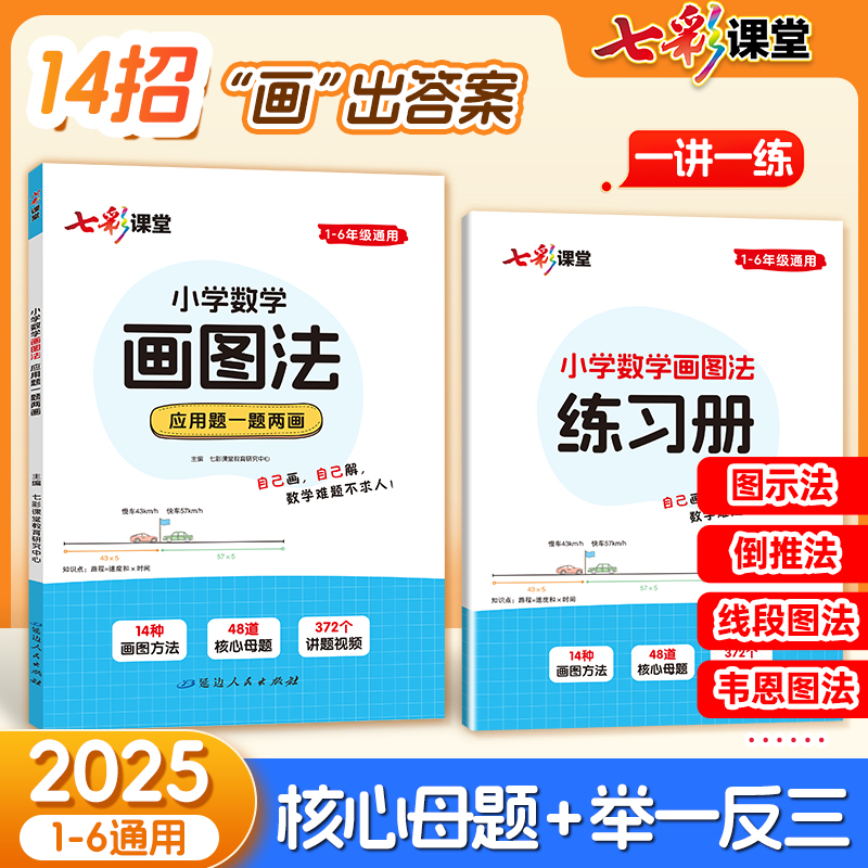 2025七彩课堂小学数学画图法秒解应用题解题思维训练书一二三四五六年级上下册人教版 通用核心母题举一反三专项强化提升讲解练习册