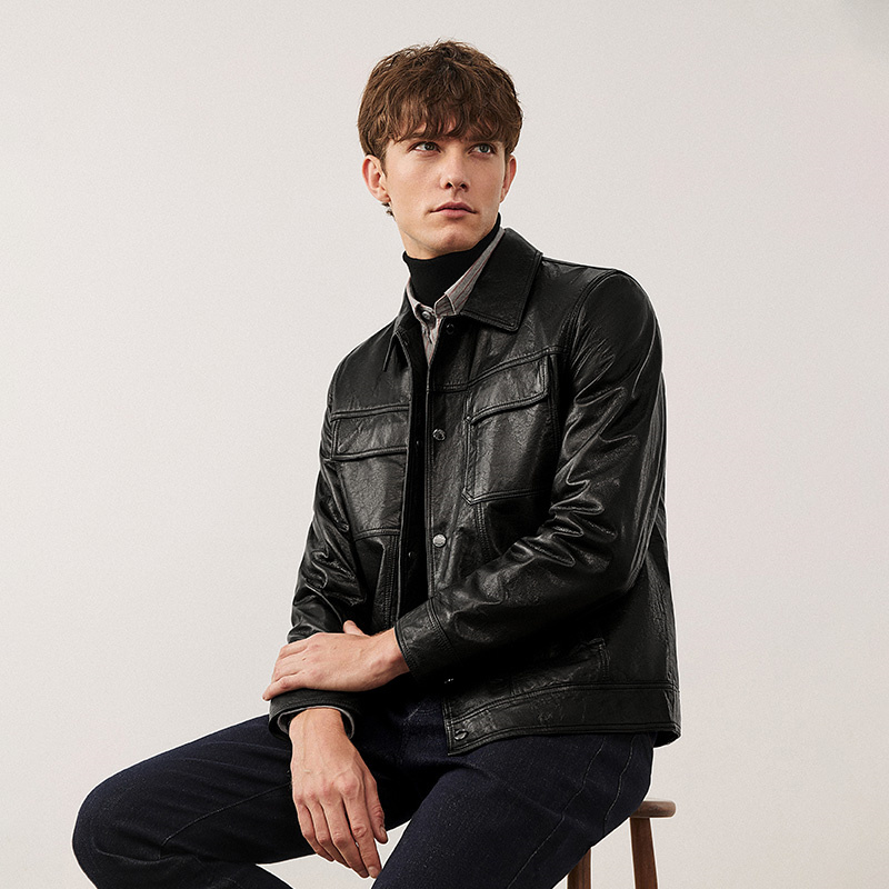 复古廓形翻领机车夹克PU皮衣美拉德外套 美式 PANMAX大码 潮牌男装