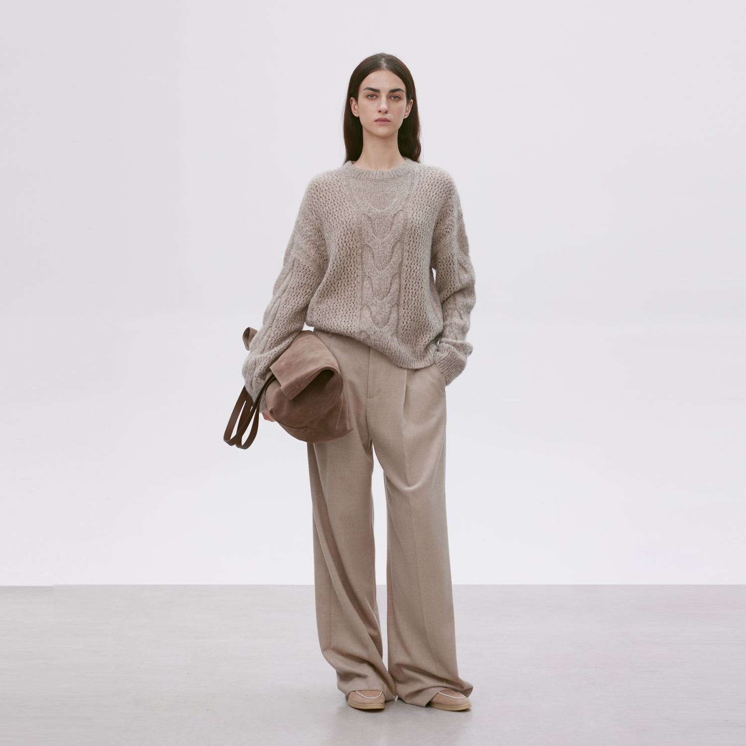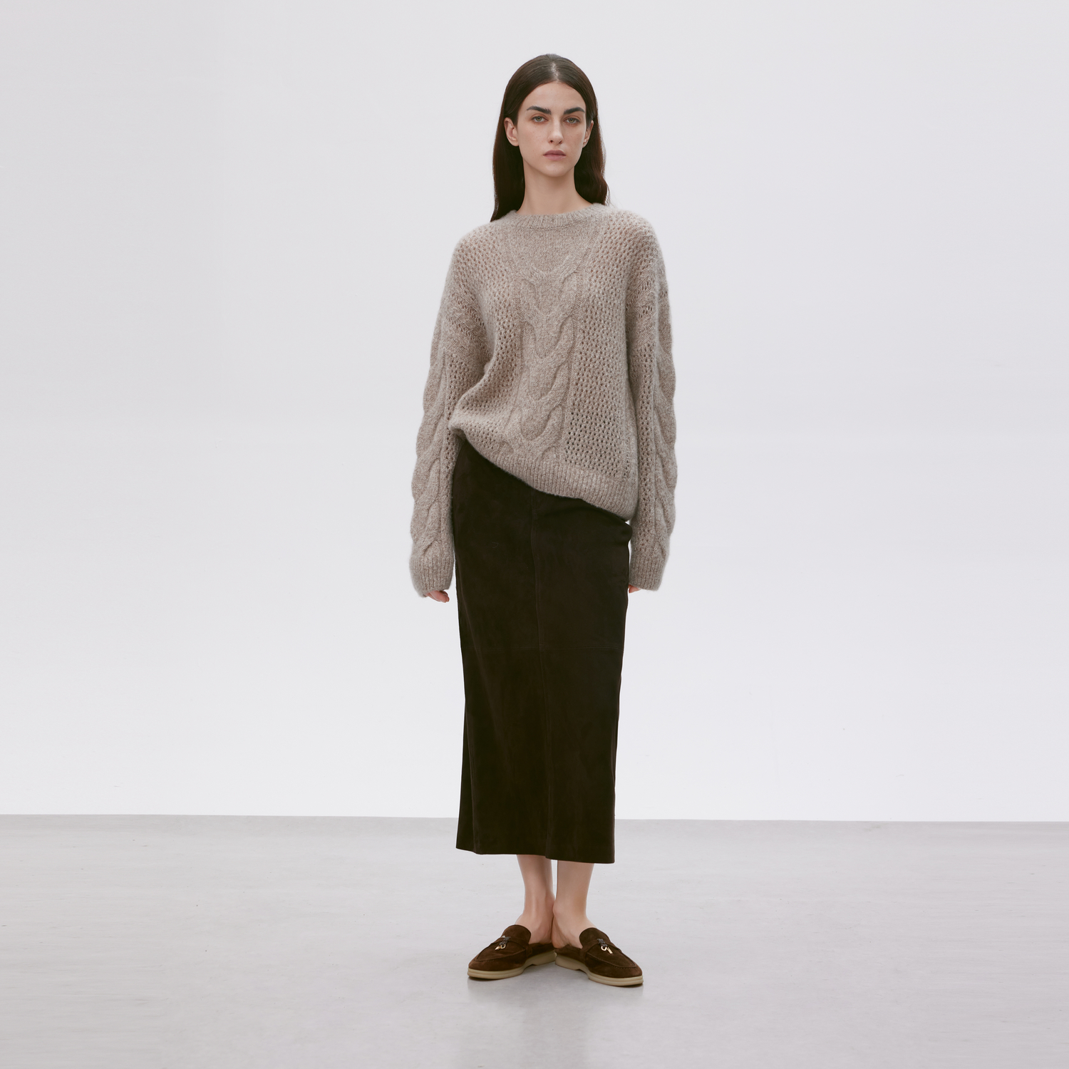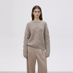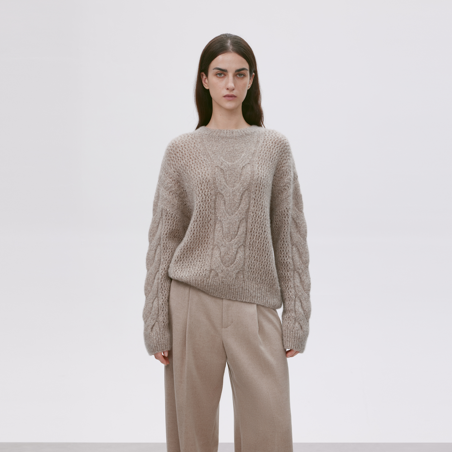MISSCOCOON可可尼C3系列绞花毛衣女2025年秋款 真丝羊绒毛针织衫