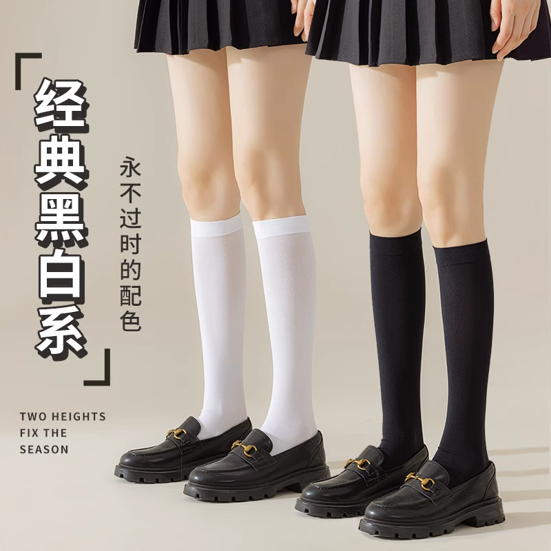 中筒袜 女士韩版 压力小腿袜子女春秋季 黑色显瘦高筒过膝袜2025新款