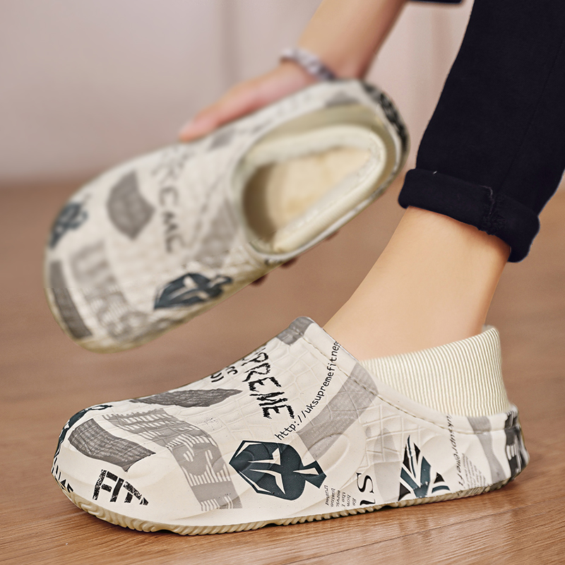 加绒加厚保暖防滑居家棉拖青少年踩屎感休闲包跟棉鞋 棉拖鞋 男冬季