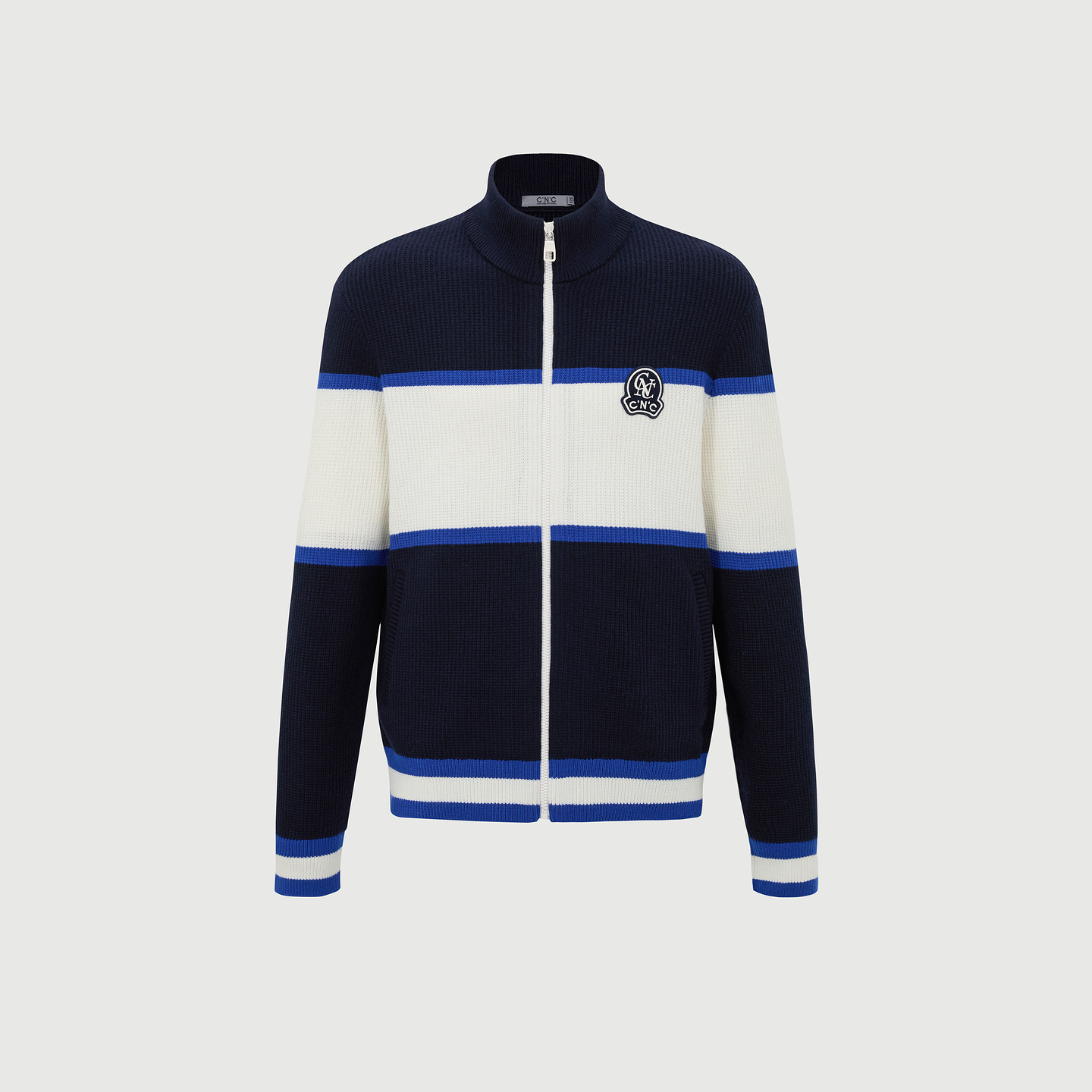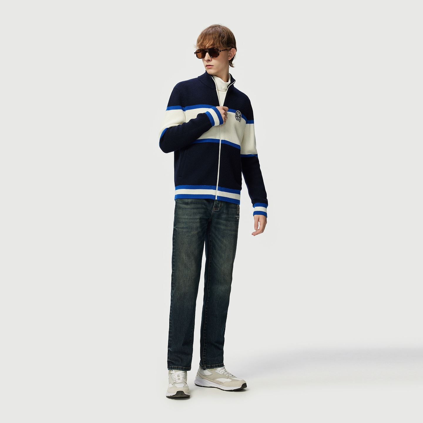 休闲羊毛开衫 品牌LOGO刺绣标撞色时尚 外套厚男 25秋冬新款 CNC男装