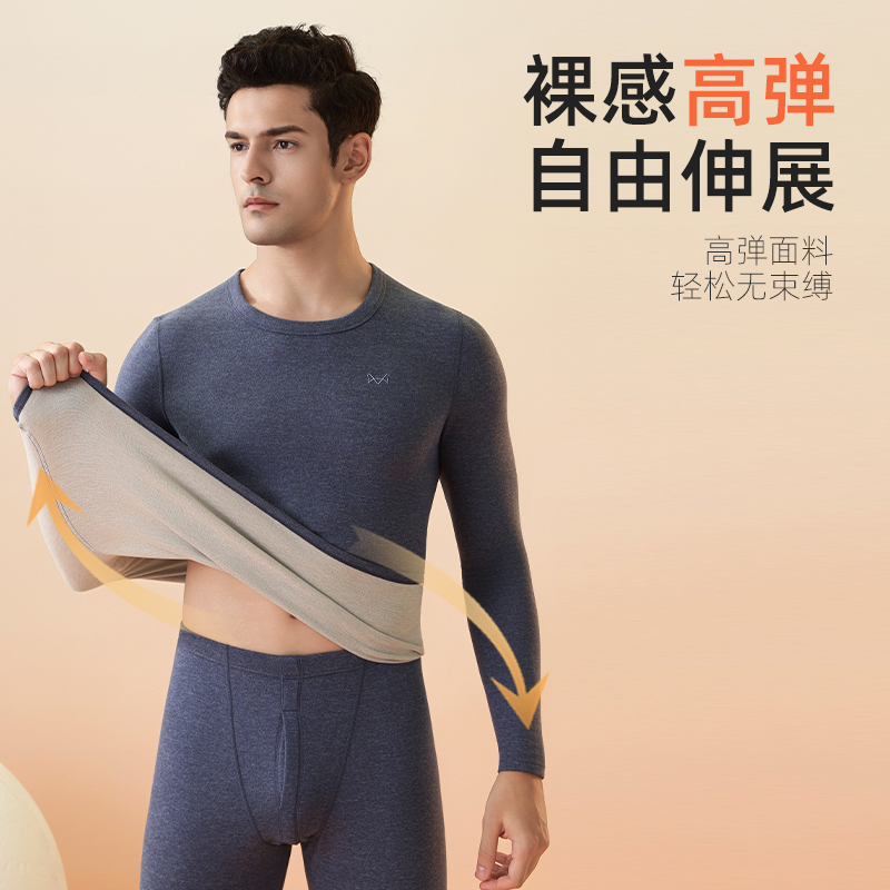 男士 加厚蓄热保暖内衣套装 打底毛衫 新款 冬 线衣衬裤 猫人秋衣秋裤