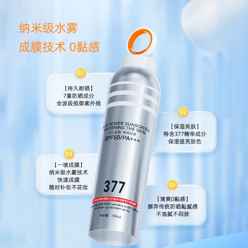 377美白抗皱防晒喷雾提亮肤色全身通用滋润防水隔离紫外线4