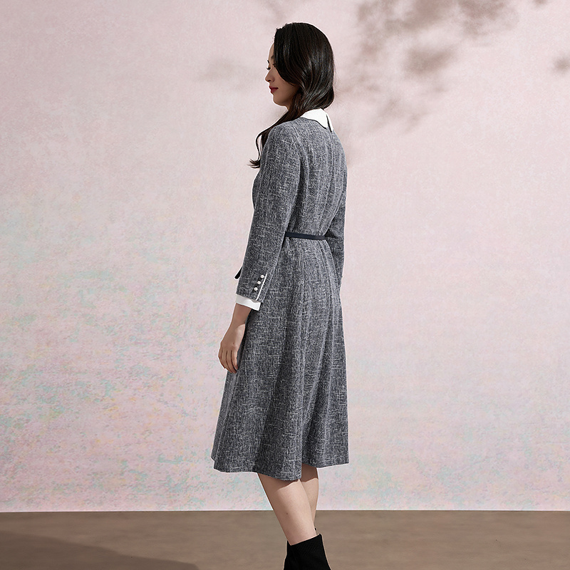 时尚 PRICH假两件撞色翻领连衣裙冬季 减龄通勤长裙女 羊毛