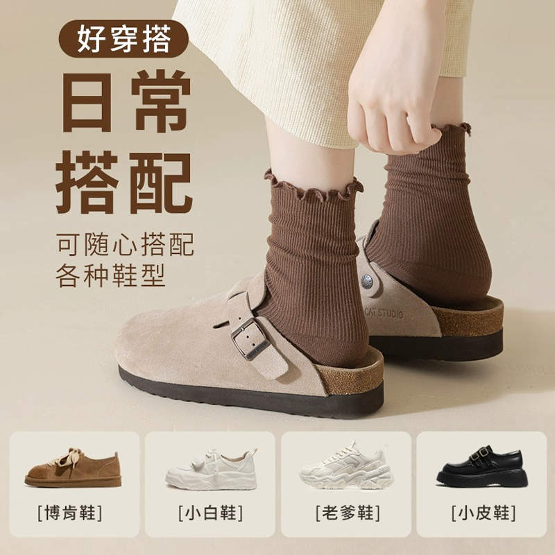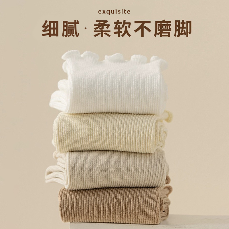 纯棉长袜配小皮鞋 堆堆袜女款 白色中筒袜2025新款 花边袜子女秋冬季