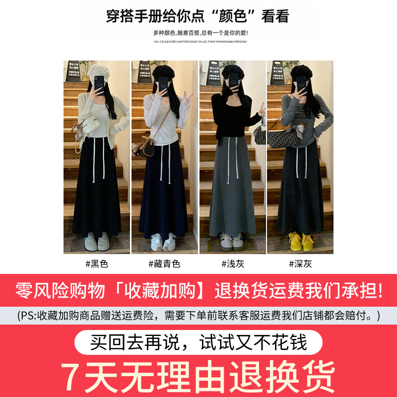 毛呢半身裙女春秋冬季 梨形身材伞裙黑色半裙气质a字长裙 2025新款