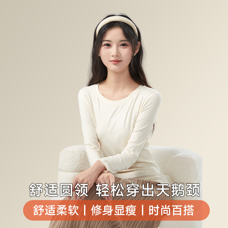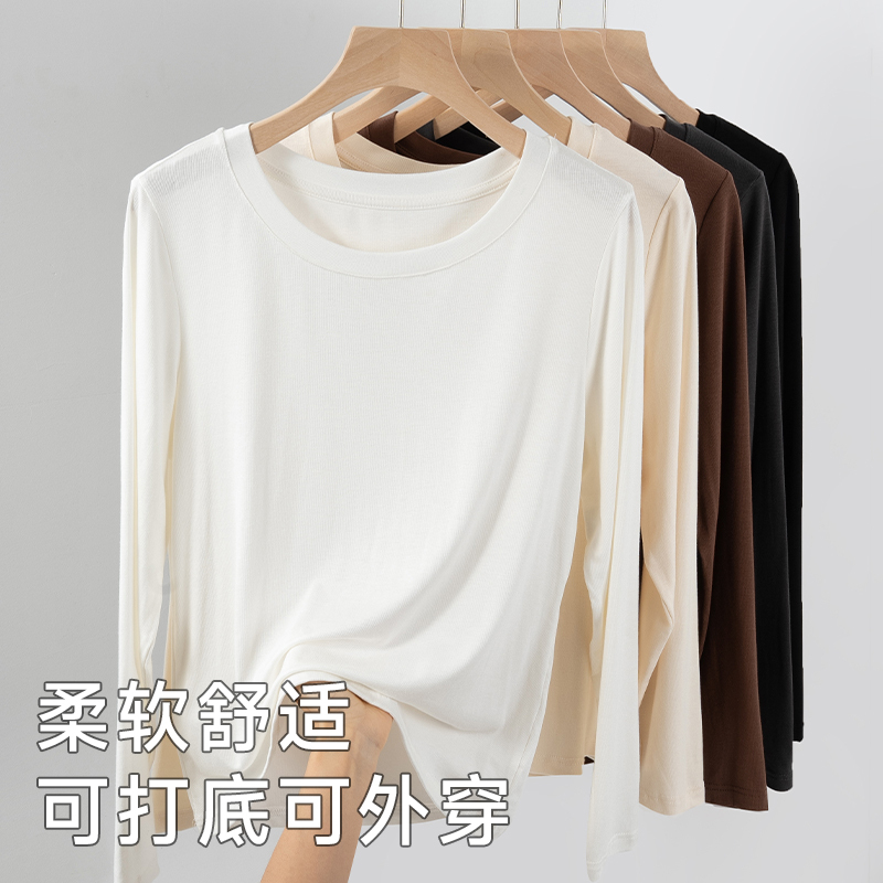修身 t恤女士春秋外穿正肩圆领大码 显瘦叠穿T恤上衣 长袖 内搭打底衫
