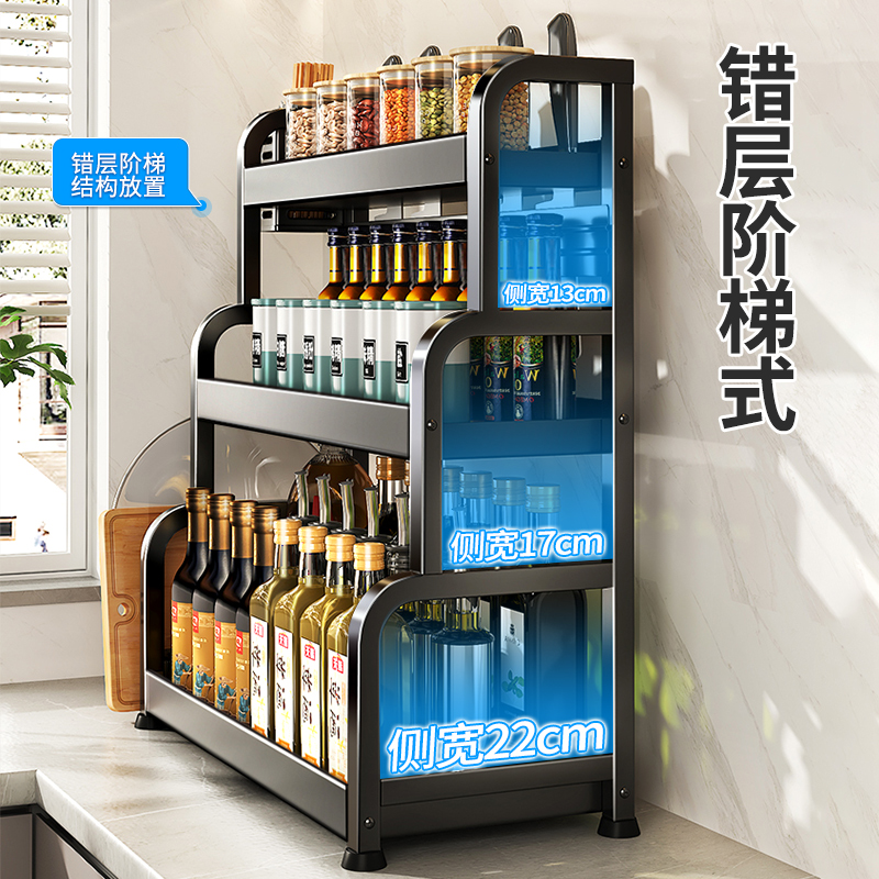 厨房置物架落地式 多层置物架角架多功能收纳整理架加高桌面收纳柜