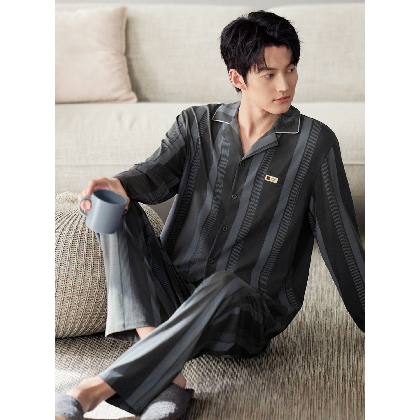 男款 秋季 大码 睡衣男士 款 纯棉长袖 休闲四季 秋冬高级感家居服 春秋款