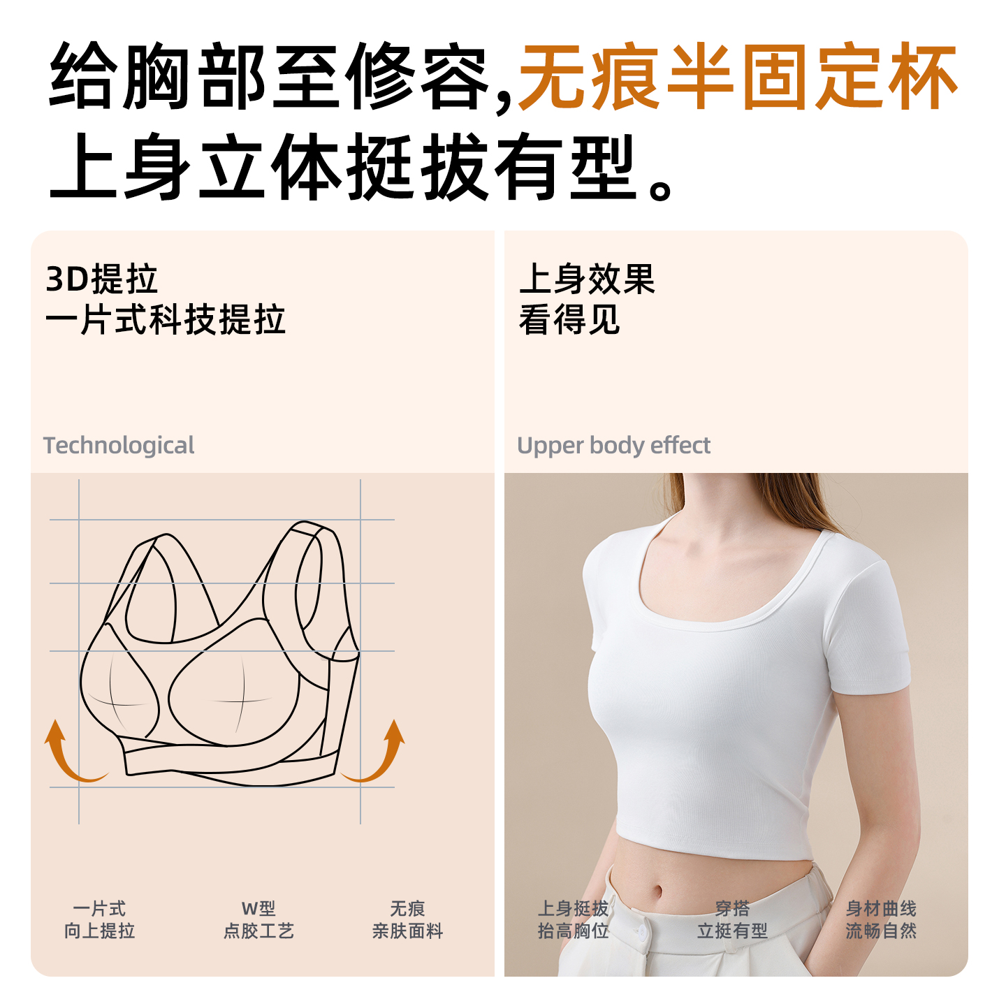 婷美小胸聚拢内衣女收副乳提拉防下垂无痕粉底液宽肩带美背文胸罩