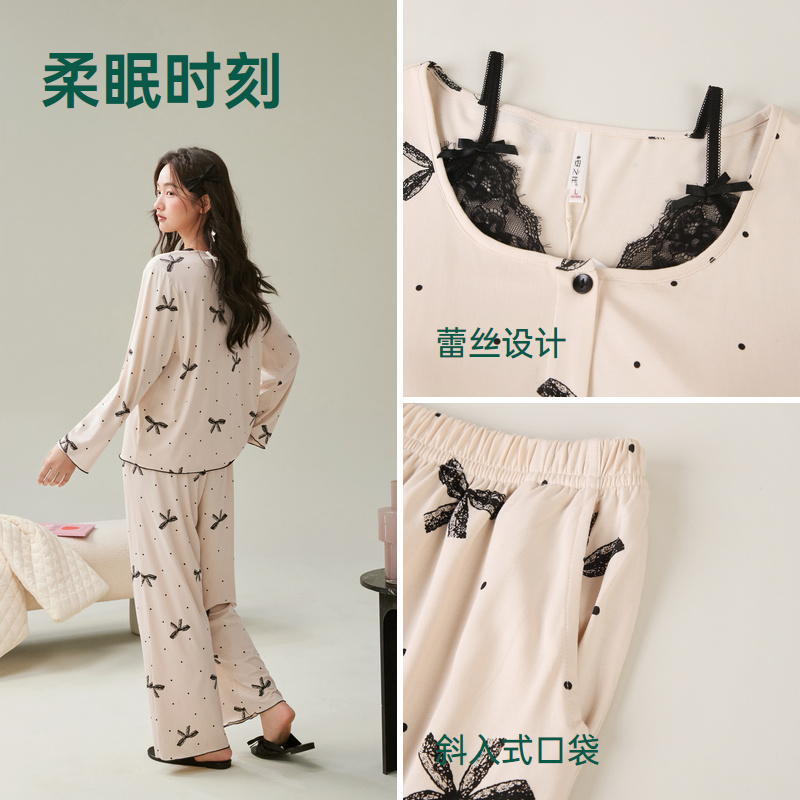 带胸垫宽松家居服套装 安之伴 春秋季 纯棉睡衣女款 可外穿 巨柔软