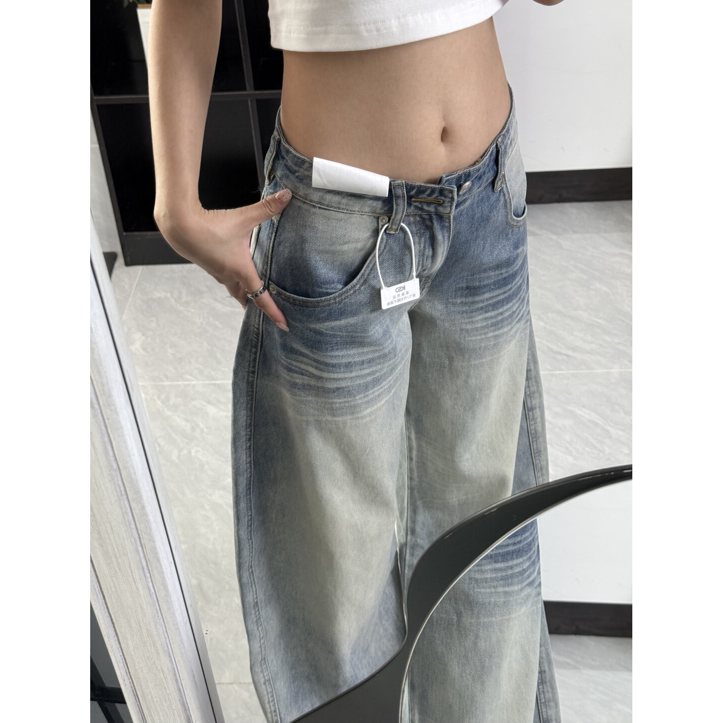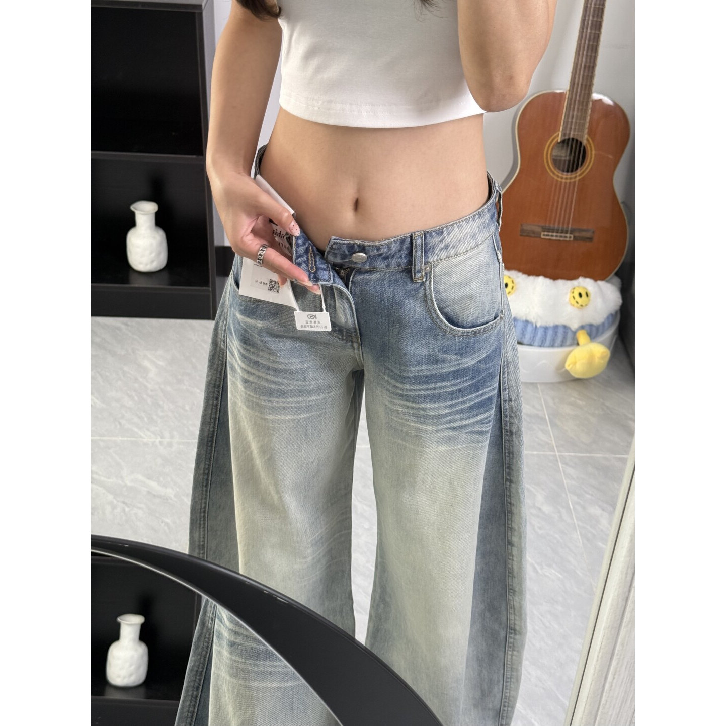 设计感宽松阔腿梧桐镰刀裤 美式 秋季 女2025新款 子 闪电纹弯刀牛仔裤