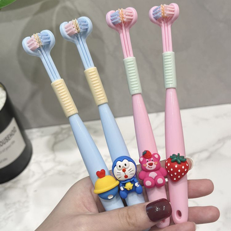 儿童三面牙刷软毛超细头可爱卡通4 12岁宝宝专用刮舌苔清洁无死角