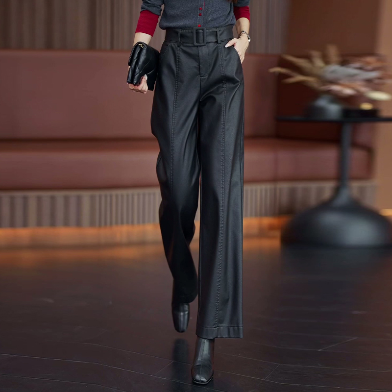子秋冬款 黑色蛋白PU皮裤 宽松垂感小个子直筒阔腿裤 2025新款 女秋季