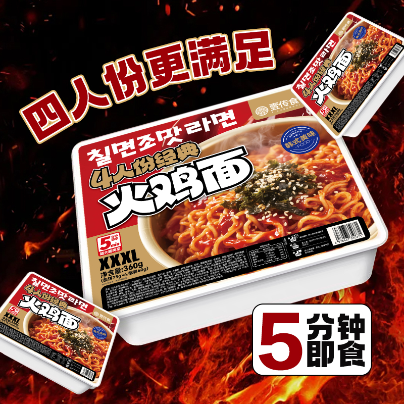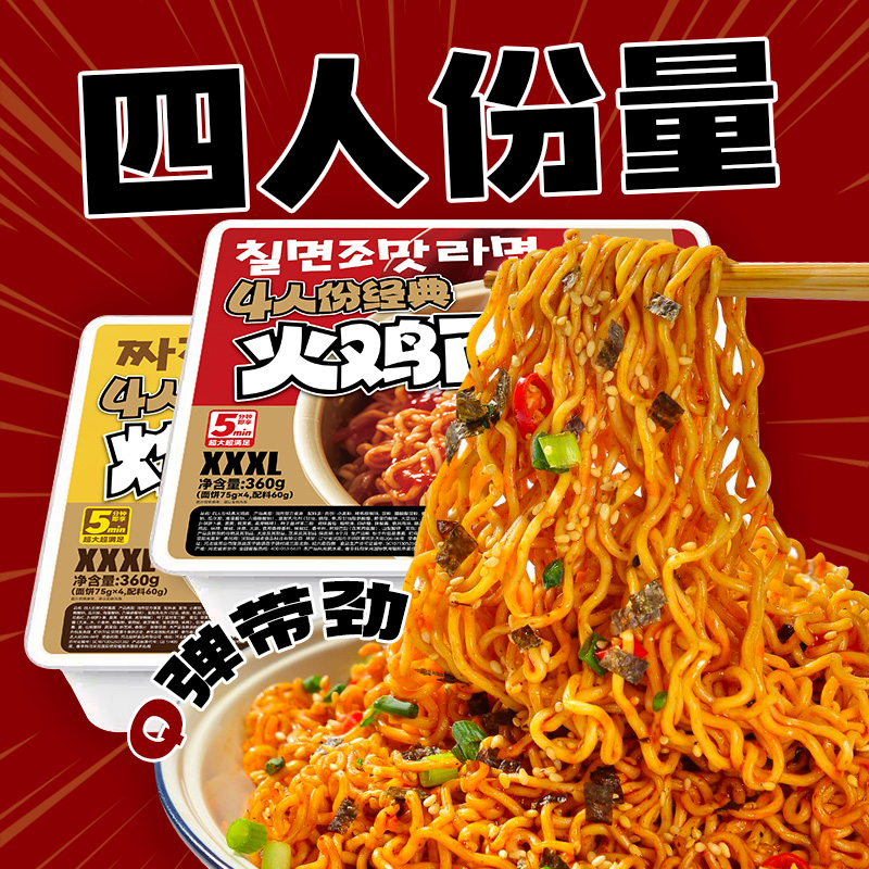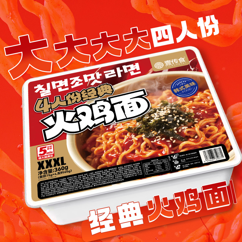 巨型拌面火鸡面大胃王泡面韩式 炸酱面方便面宵夜宿舍聚会4人份