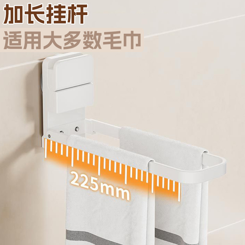 可折叠吸盘毛巾挂杆卫生间免打孔多功能壁挂晾衣架多夹子晾晒收纳