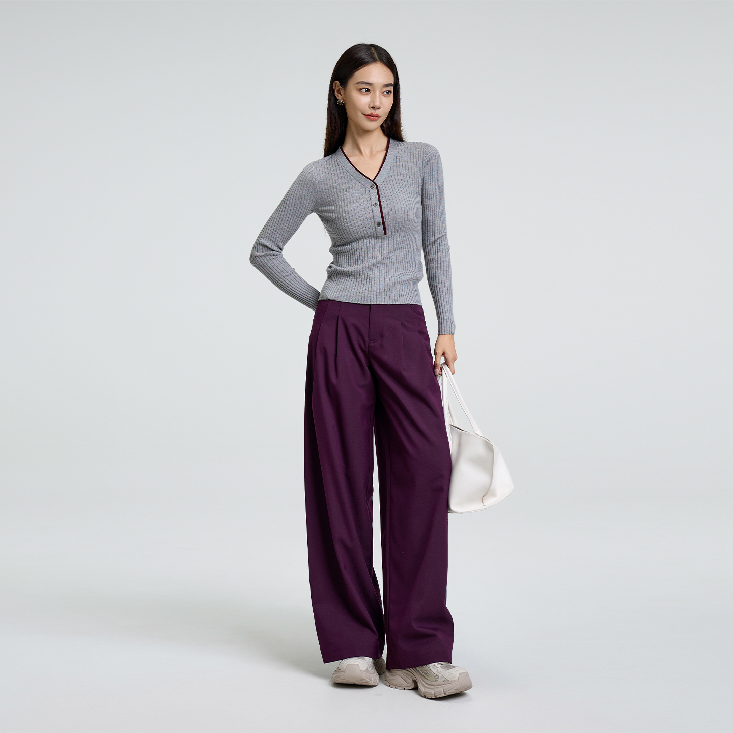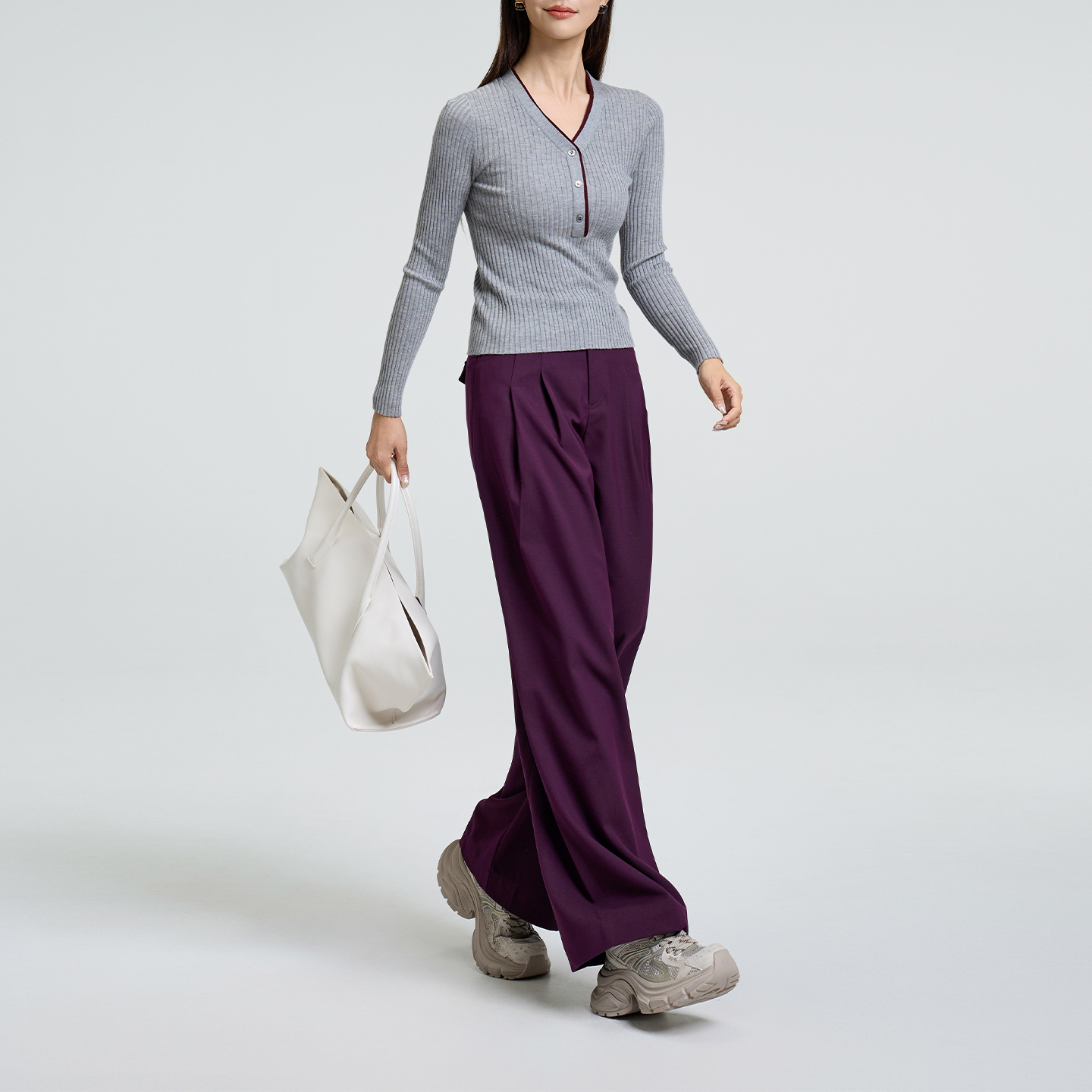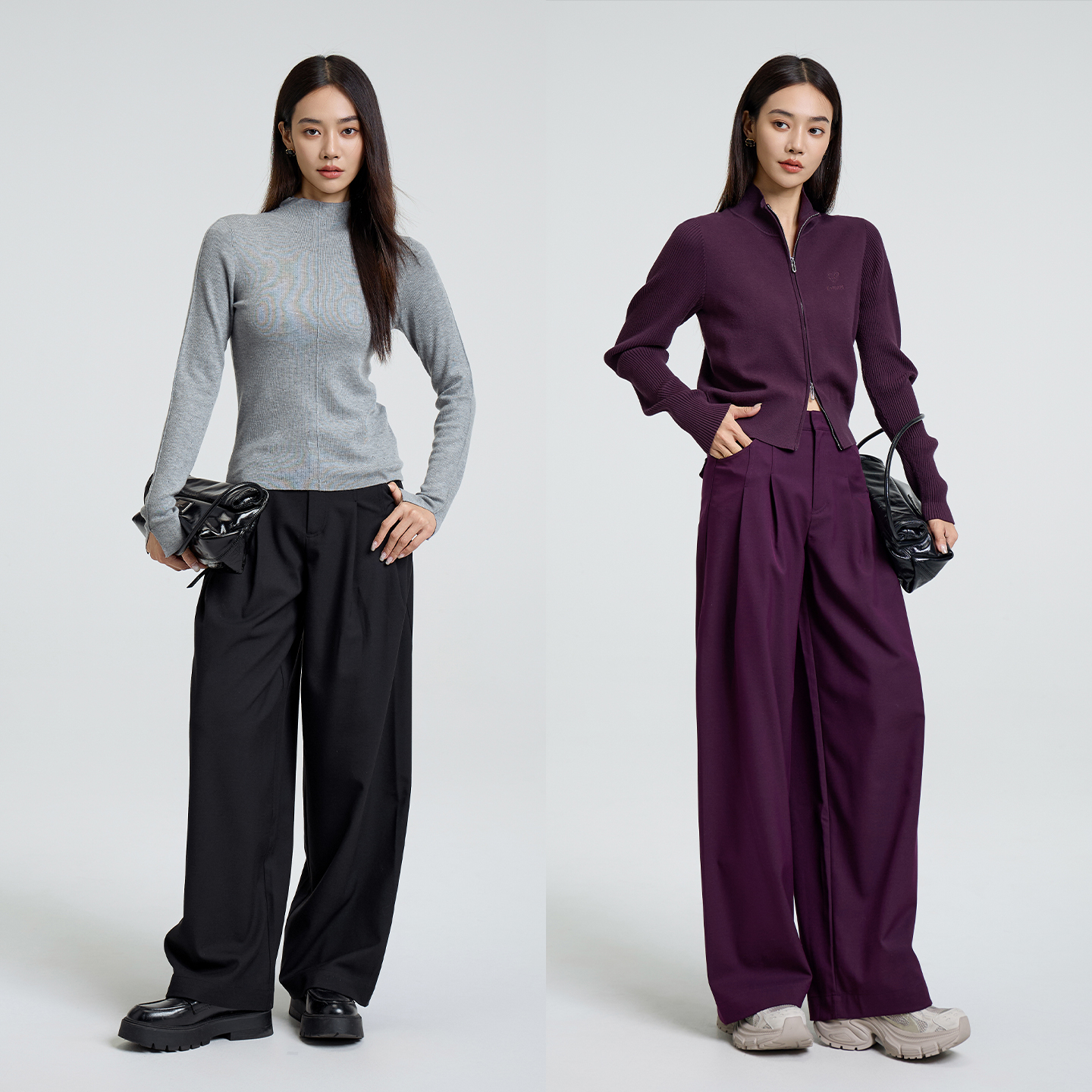 女休闲裤 恩瑞妮专柜同款 宽松显瘦气质直筒阔腿裤 新款 2025冬季