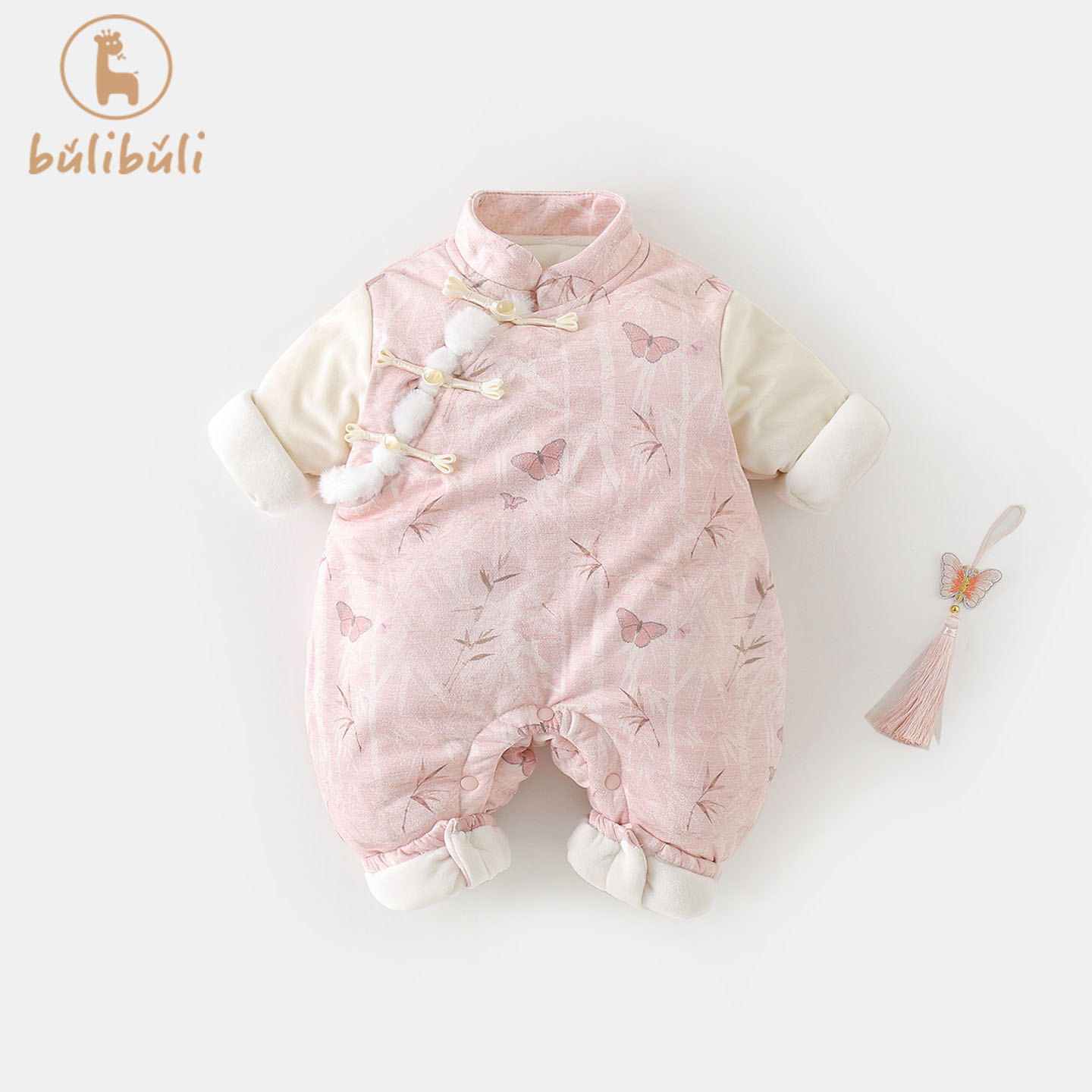 国风婴儿衣服秋冬装 加绒连体衣深秋满月百天哈衣爬服 女宝宝新中式