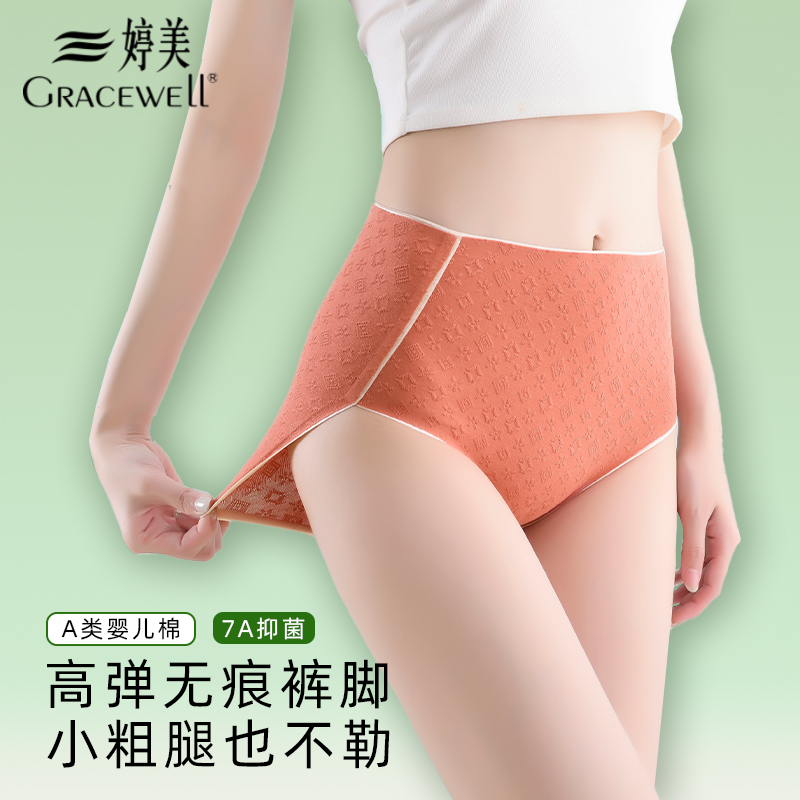 胖mm收腹三角裤 7A级抑菌简约无痕大码 女2025新款 婷美高腰纯棉内裤