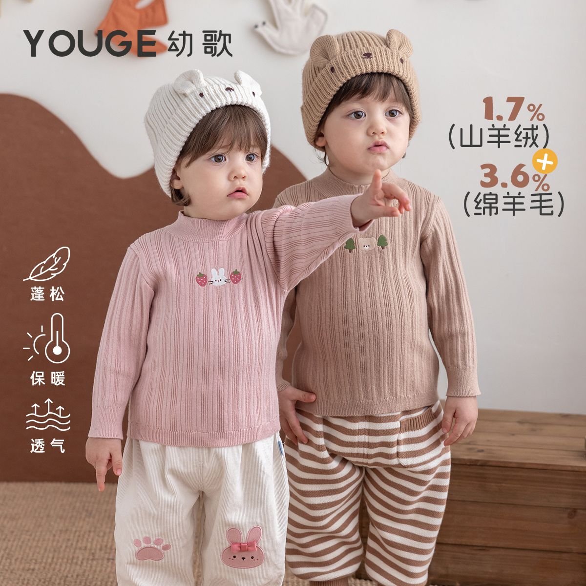 含羊毛秋冬毛衫 红豆毛衣男款 纯色打底加绒保暖针织衫 太阳绒