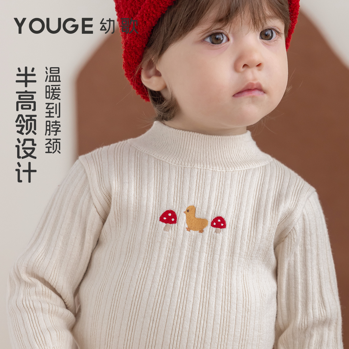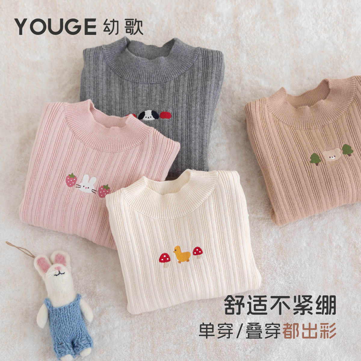毛衣刺绣含羊毛毛衫 假两件圆领显瘦2025冬新款 女短款 森马针织开衫