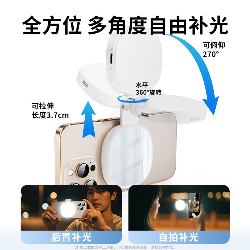 磁吸免夹Magsafe手机补光灯磁吸灯补光神器便携式 自拍主播直播拍摄打光灯户外摄影灯口袋灯面部柔光美颜灯