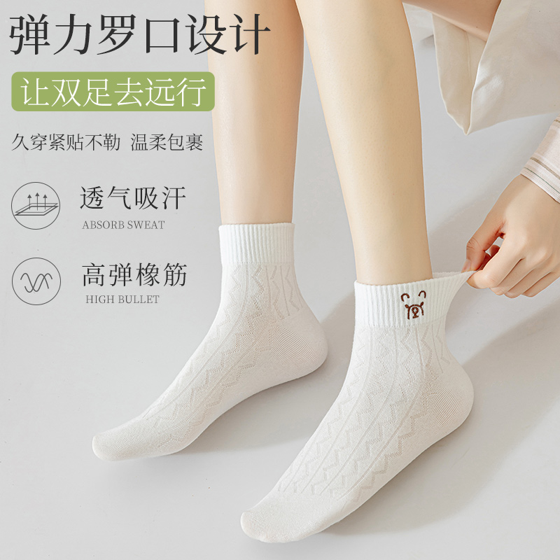 浅口袜 爆款 袜子女士春秋薄款 纯棉甜美可爱小熊刺绣短筒袜2025新款